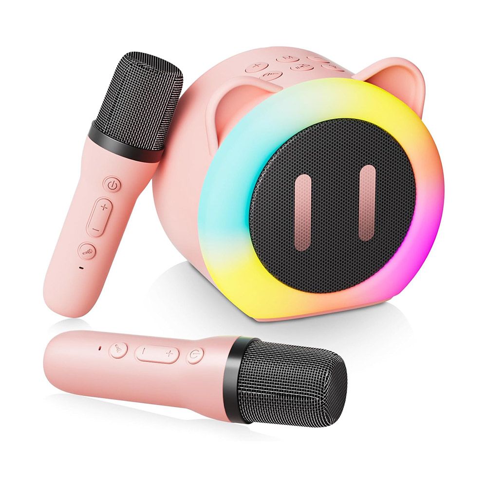 Mini Karaoke Machine, Portable Bluetooth Karaoke Speaker with 2 Wireless Microphones, Toys Birthday for Kids (Pink)