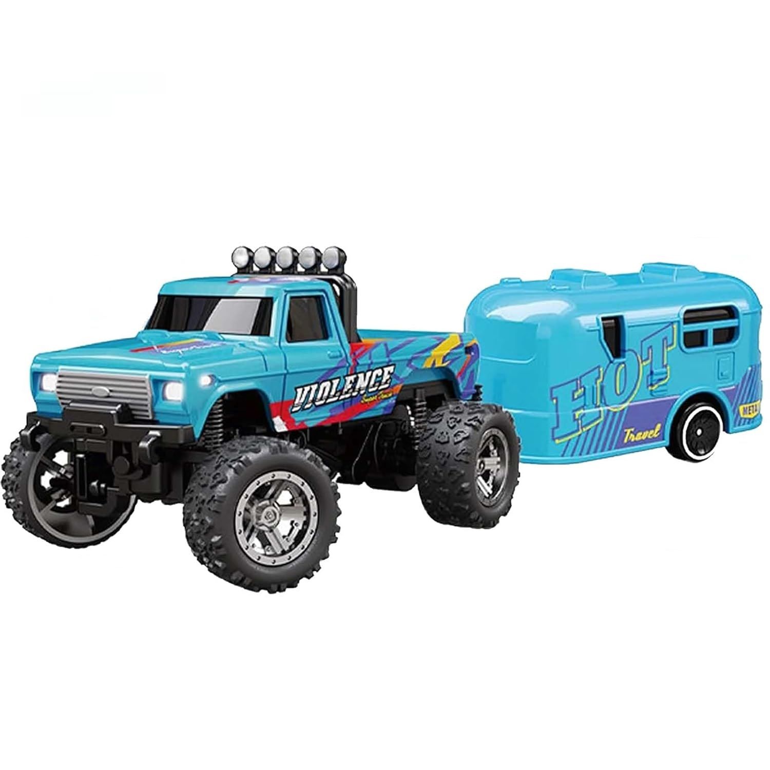 Mini Rc Monster Truck,Mini Monster Trucks,1:64 Scale Monster Truck Remote Control Car with Lights,Mini Rc Truck with Trailer,Mini Drift Rc Car (Blue-B)