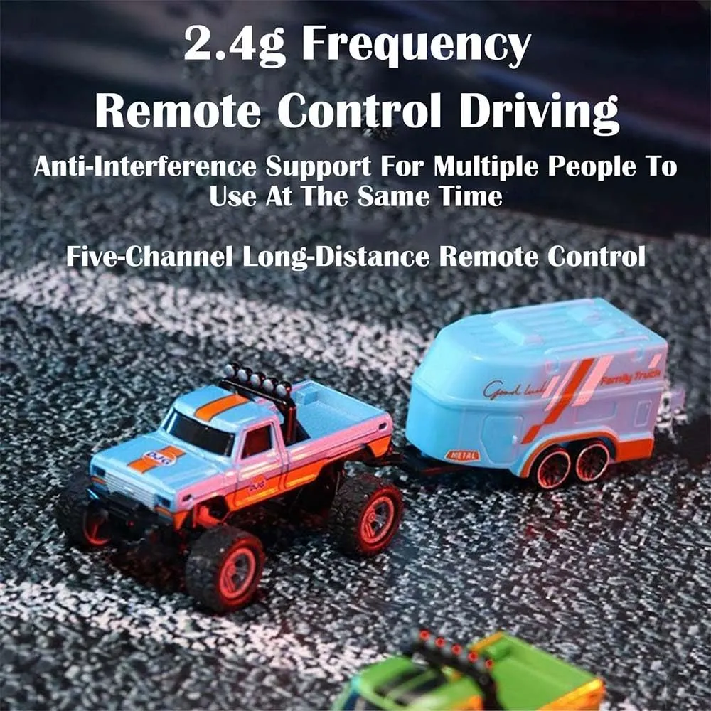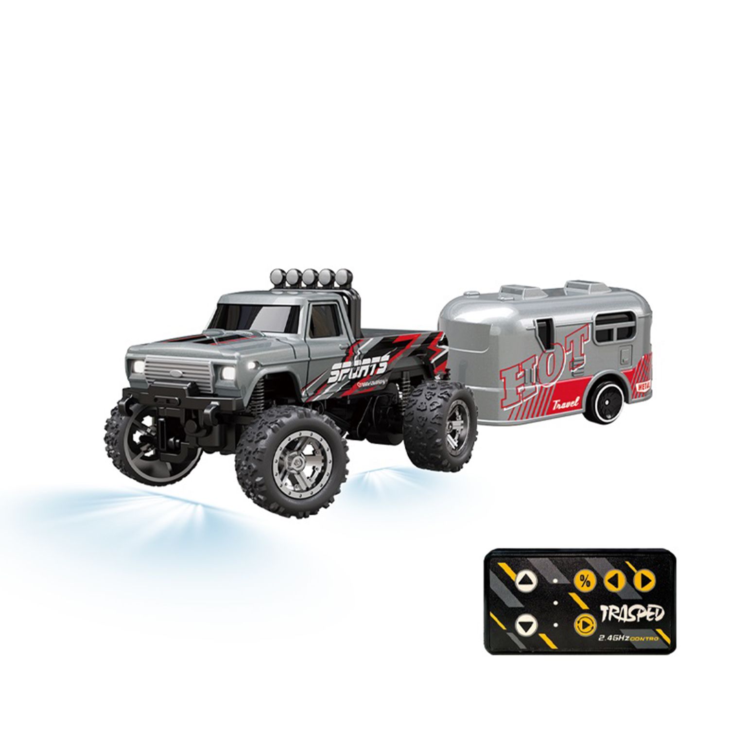Mini Rc Monster Truck,Mini Monster Trucks,1:64 Scale Monster Truck Remote Control Car with Lights,Mini Rc Truck with Trailer,Mini Drift Rc Car (Gray)