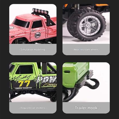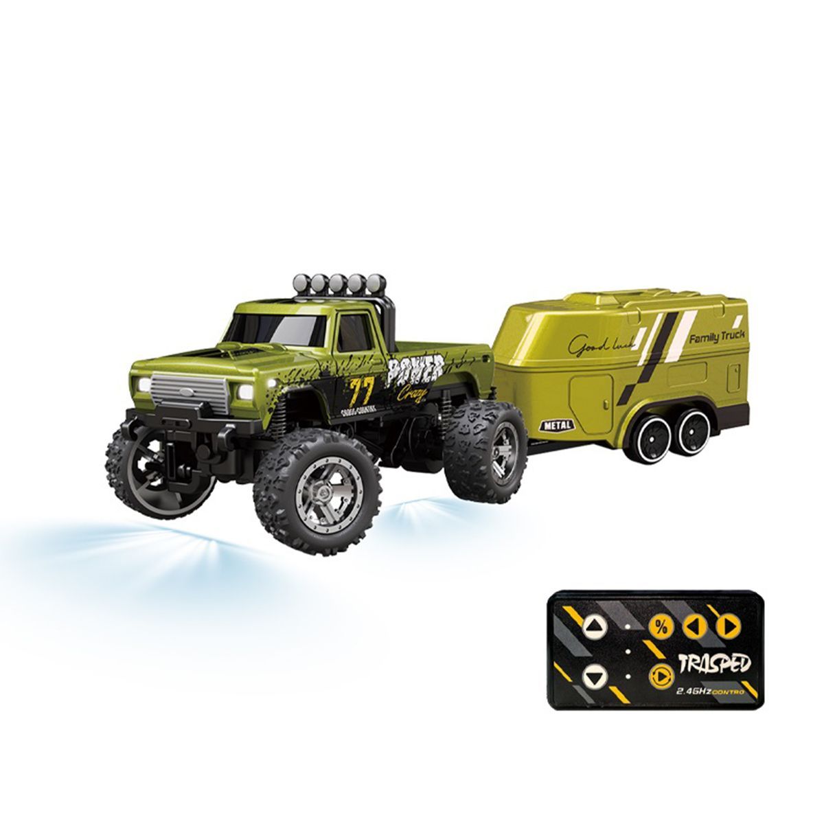 Mini Rc Monster Truck,Mini Monster Trucks,1:64 Scale Monster Truck Remote Control Car with Lights,Mini Rc Truck with Trailer,Mini Drift Rc Car (Green)