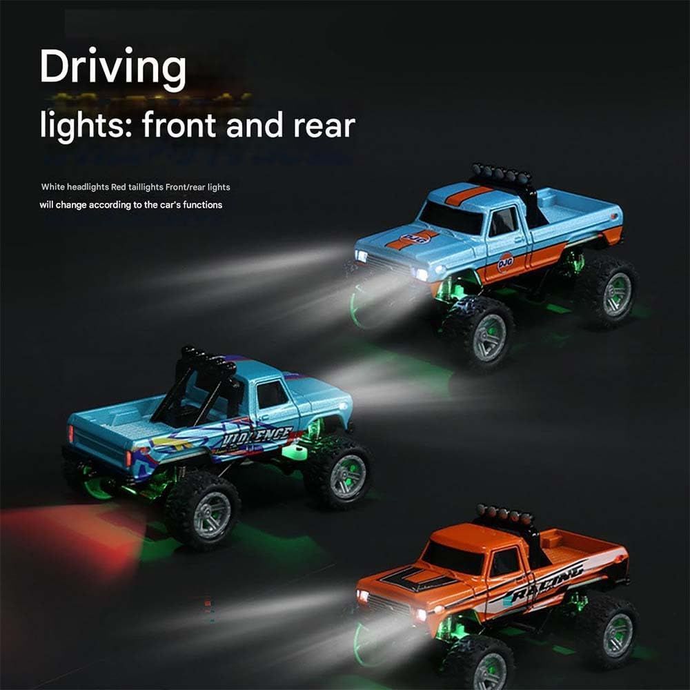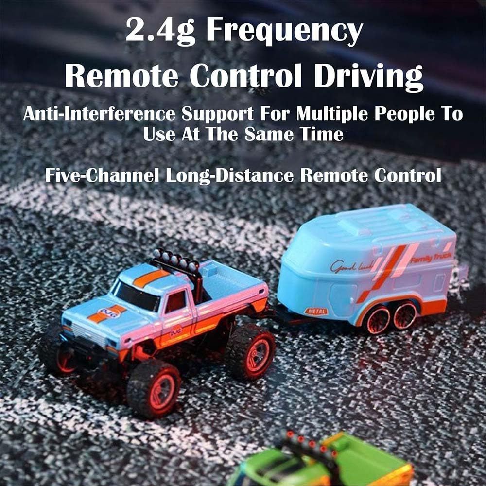 Mini Rc Monster Truck,Mini Monster Trucks,1:64 Scale Monster Truck Remote Control Car with Lights,Mini Rc Truck with Trailer,Mini Drift Rc Car (Orange)