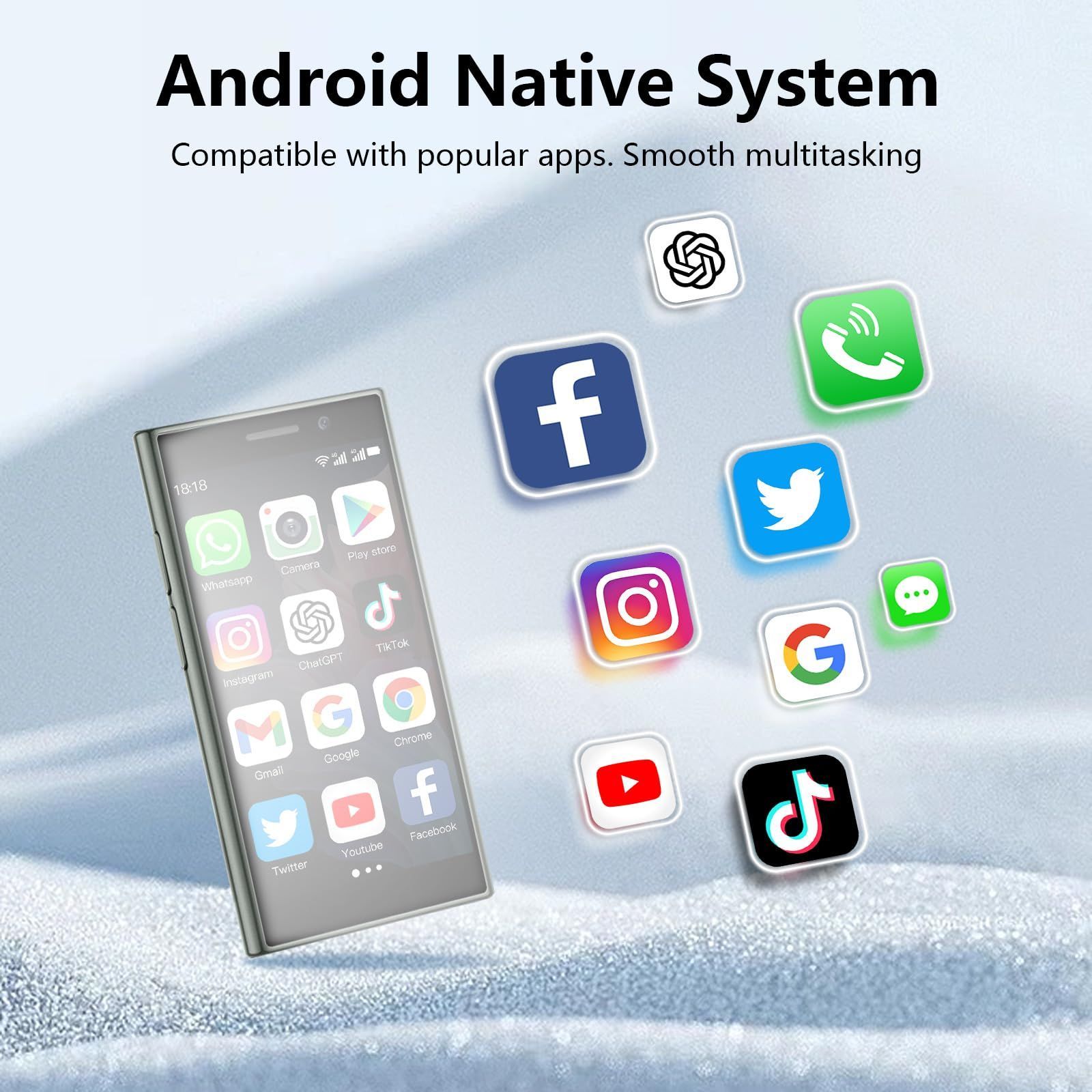 - Powerful Mini Phone : The mini smartphone is equipped with a quad-core processor, ensuring fast and smooth performance without any lag. Running on Android 8.1, it supports a wide array of apps and is fully compatible with popular Google Play Store applications, including Facebook, YouTube, Instagram, WhatsApp, TikTok, Twitter, and more. Enjoy effortless functionality and access to all your favorite apps in this compact, high-performance device