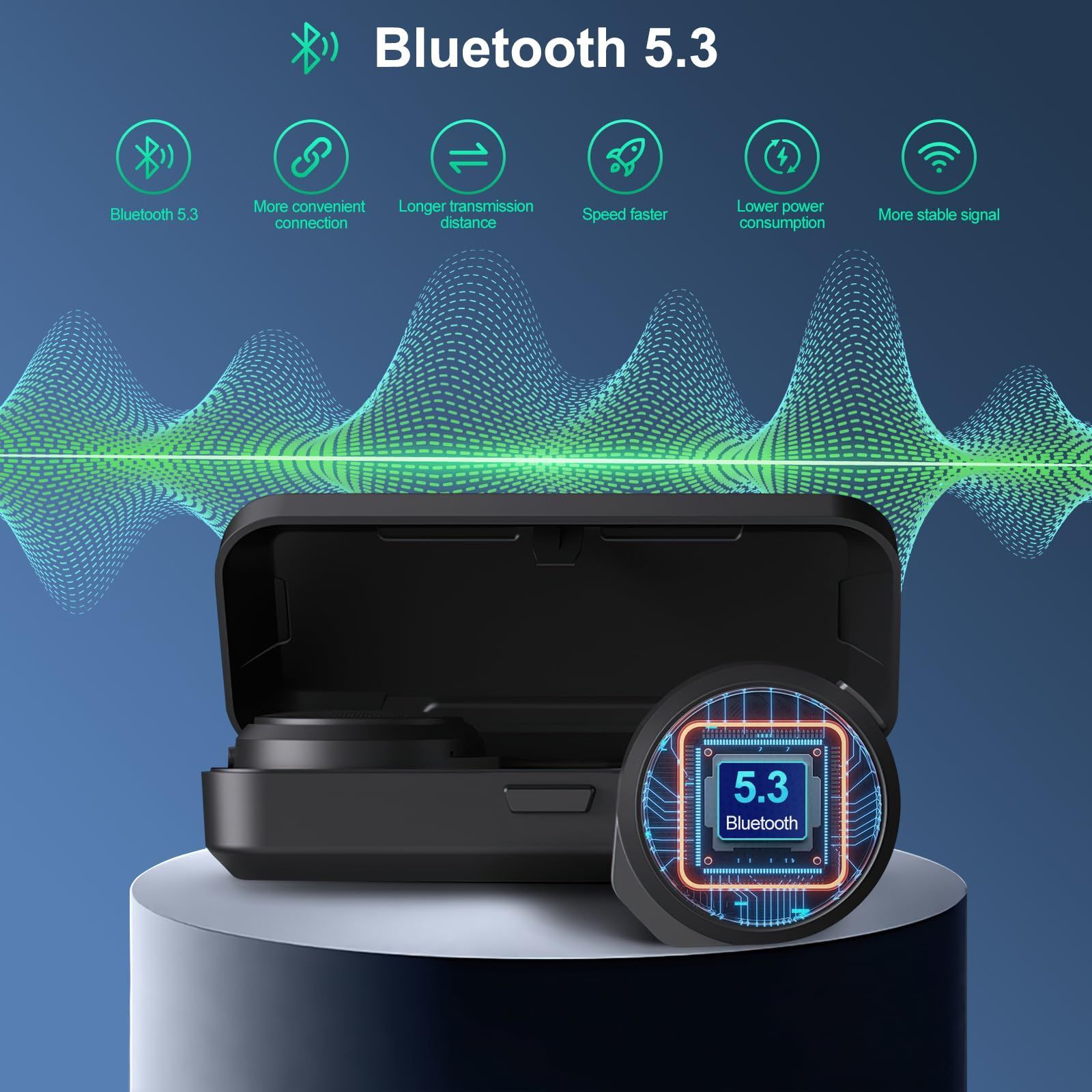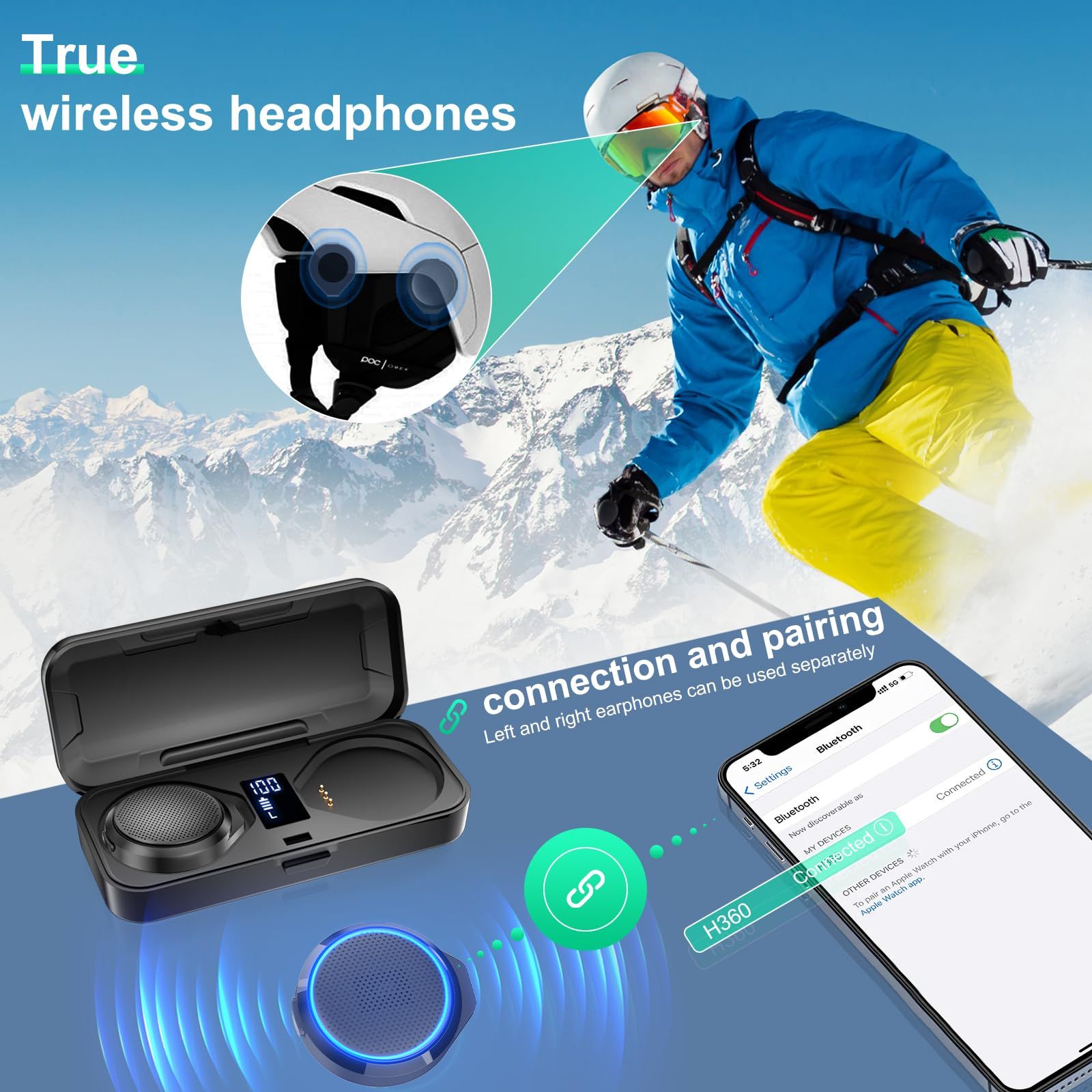 Motorcycle Helmet Headsets Bluetooth 5.3,Real Wireless Hands-Free Kit with Charging Box and Remote Control,Suitable for Riding,Skiing,Climbing