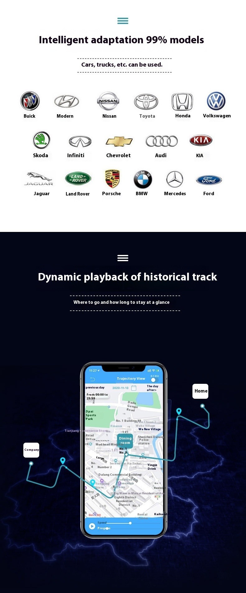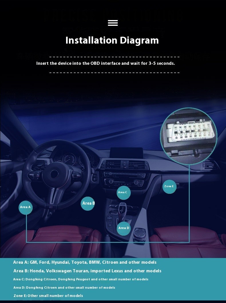 OBD Power Adapter Universal Vehicle Car DVR GPS Phone Tablet 4G Tracker GPS Tracker SOS Movement Geofence Overspeed Alarms 5M Accuracy Long Battery Life