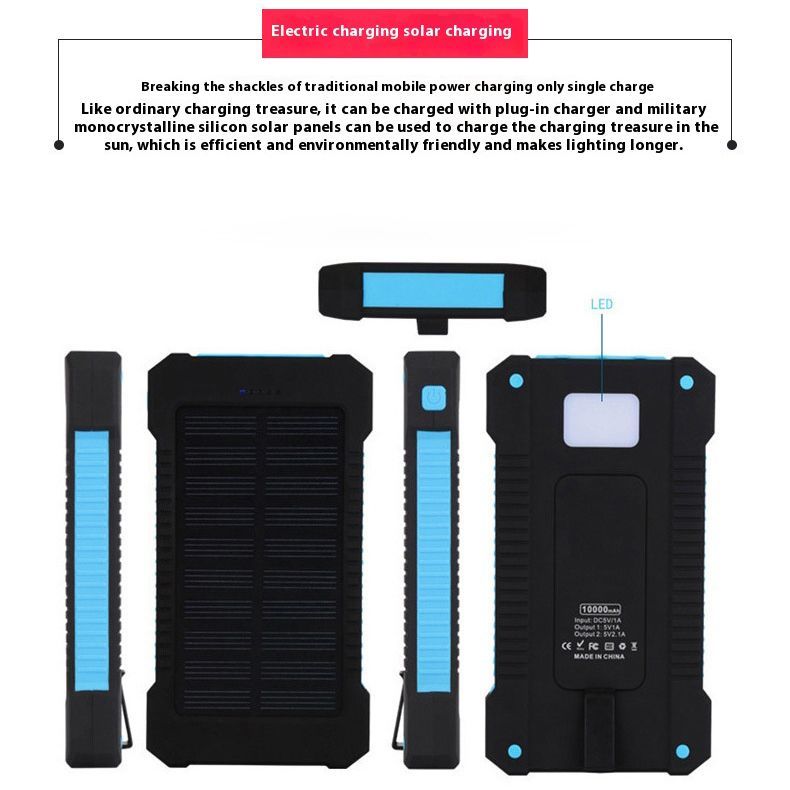 Orange Outdoor Solar Charger 20000mAh LED Lighting Waterproof Mobile Power Bank