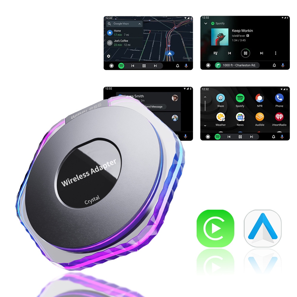 Original Car Wireless CarPlay Android Auto Interconnection Box 2in1 Converter RGB Ambient Light