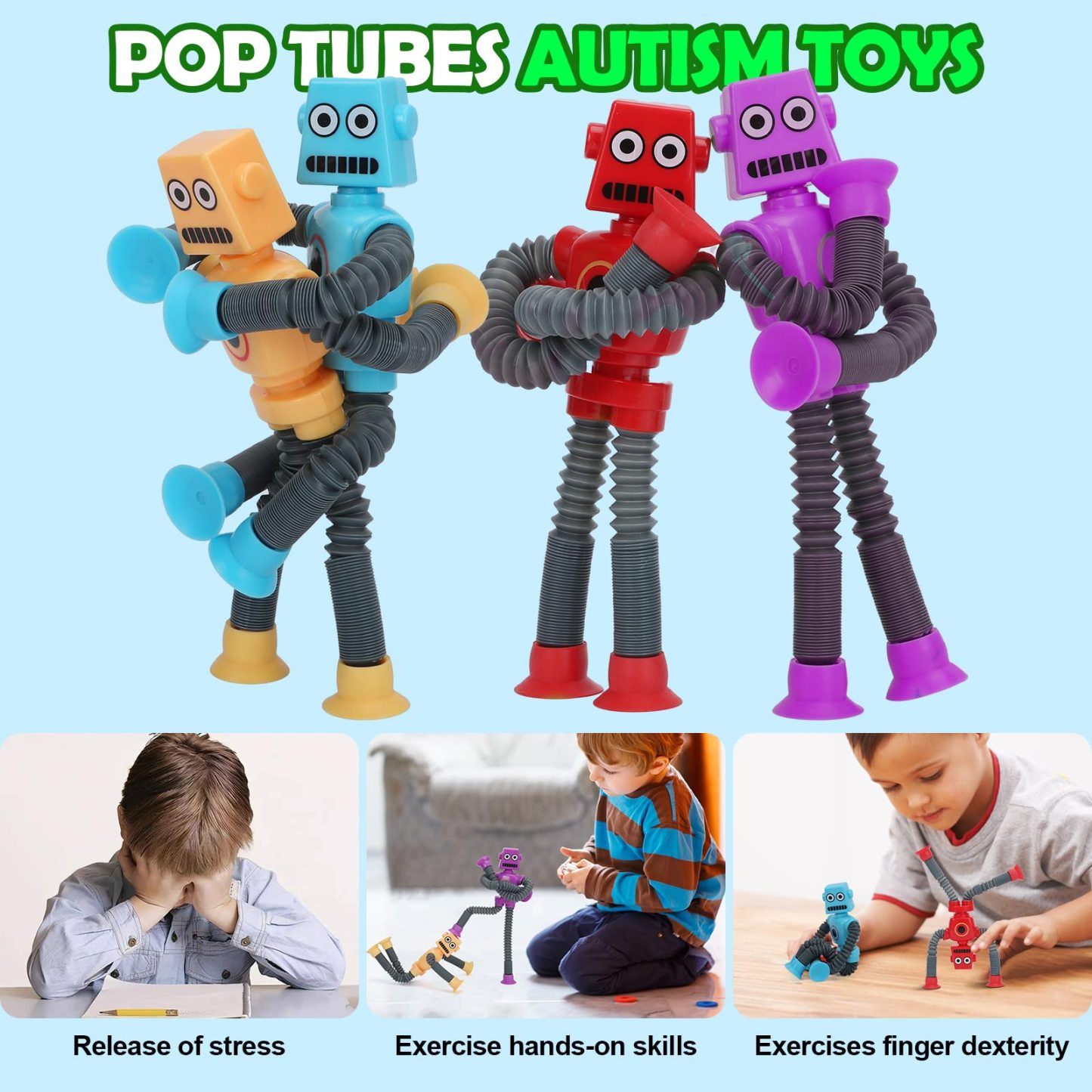 Pop Tubes,Robotics Fidget Tubes Sensory Toys Pack(4Pack),Toddler Sensory Toys Imaginative Play & Stimulating Creative Learning (4PCS Robotics Pop Tubes)