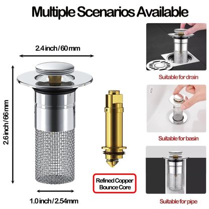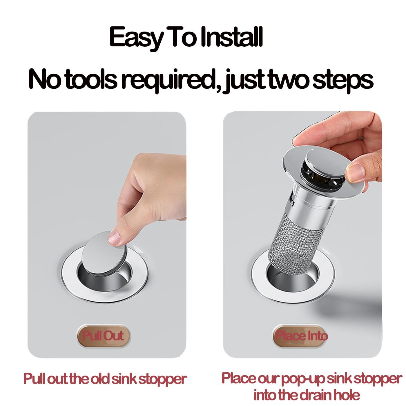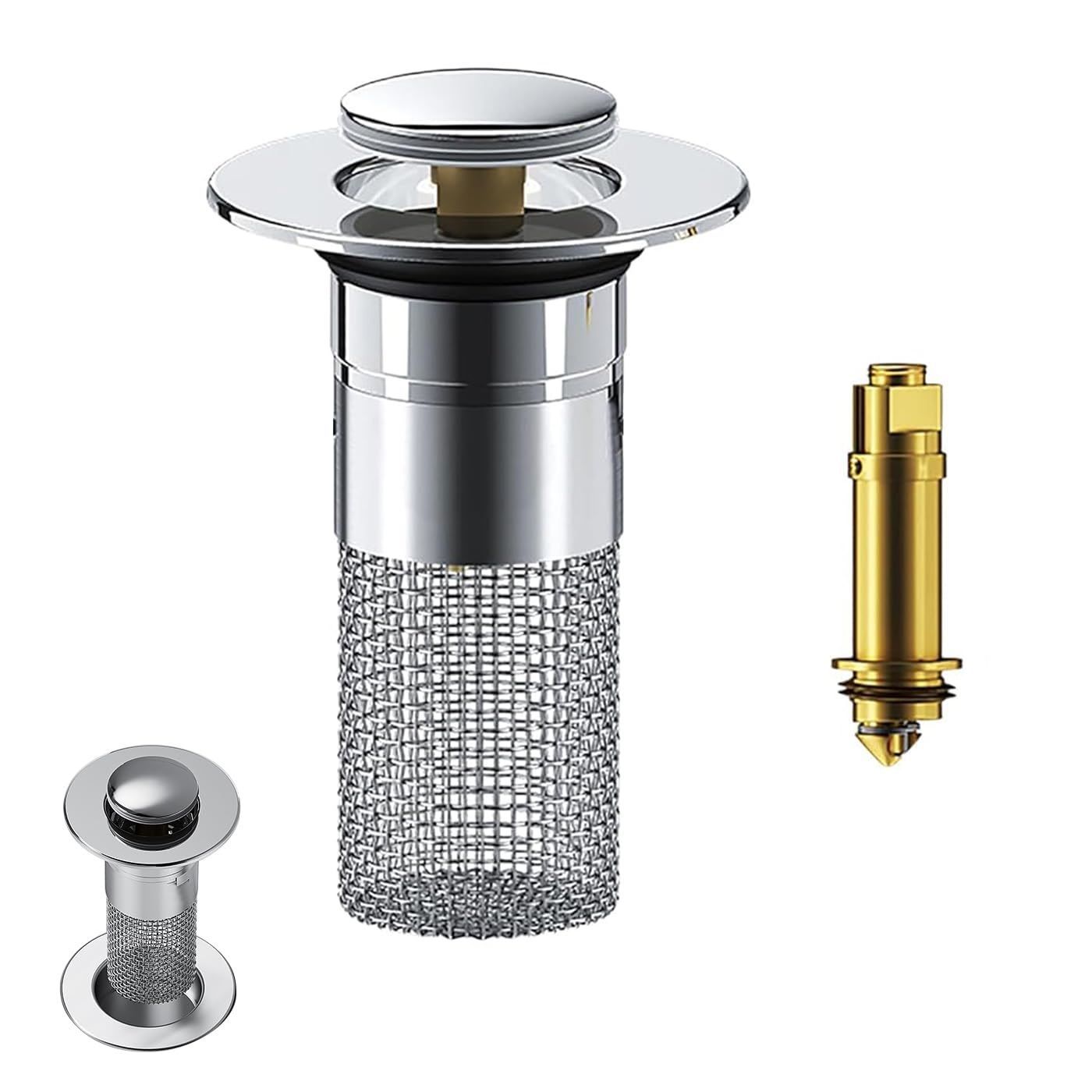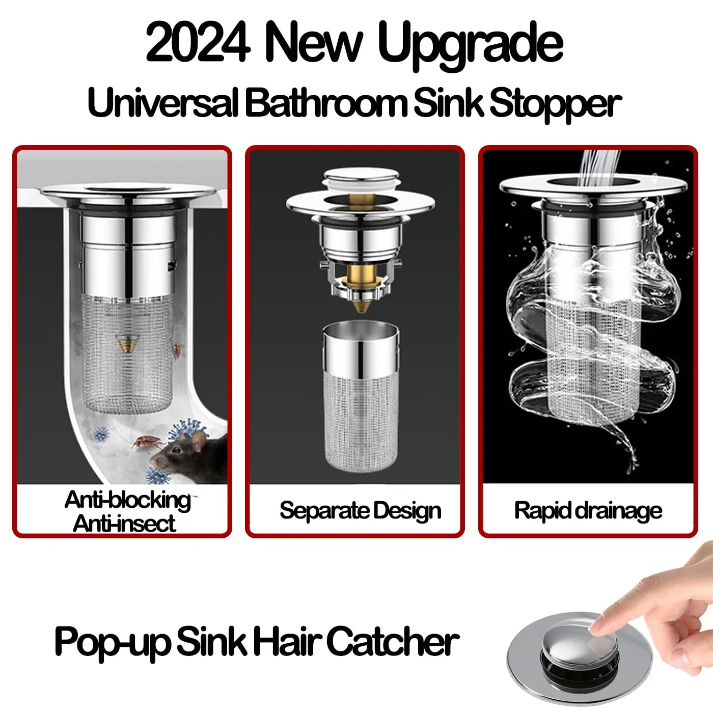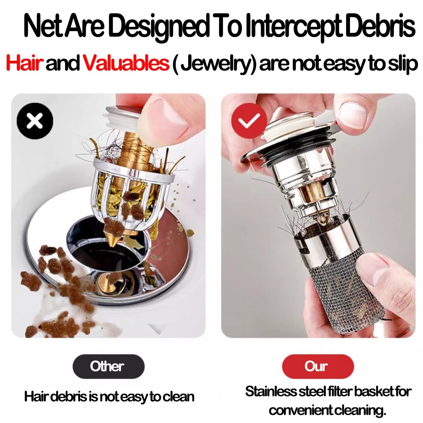 Pop Up Bathroom Sink Drain Strainer Hair Catcher,Sink Drain Stopper with Removable Stainless Steel Filter Basket,for Universal Bathroom Kitchen Basin Sink Stopper Replacement