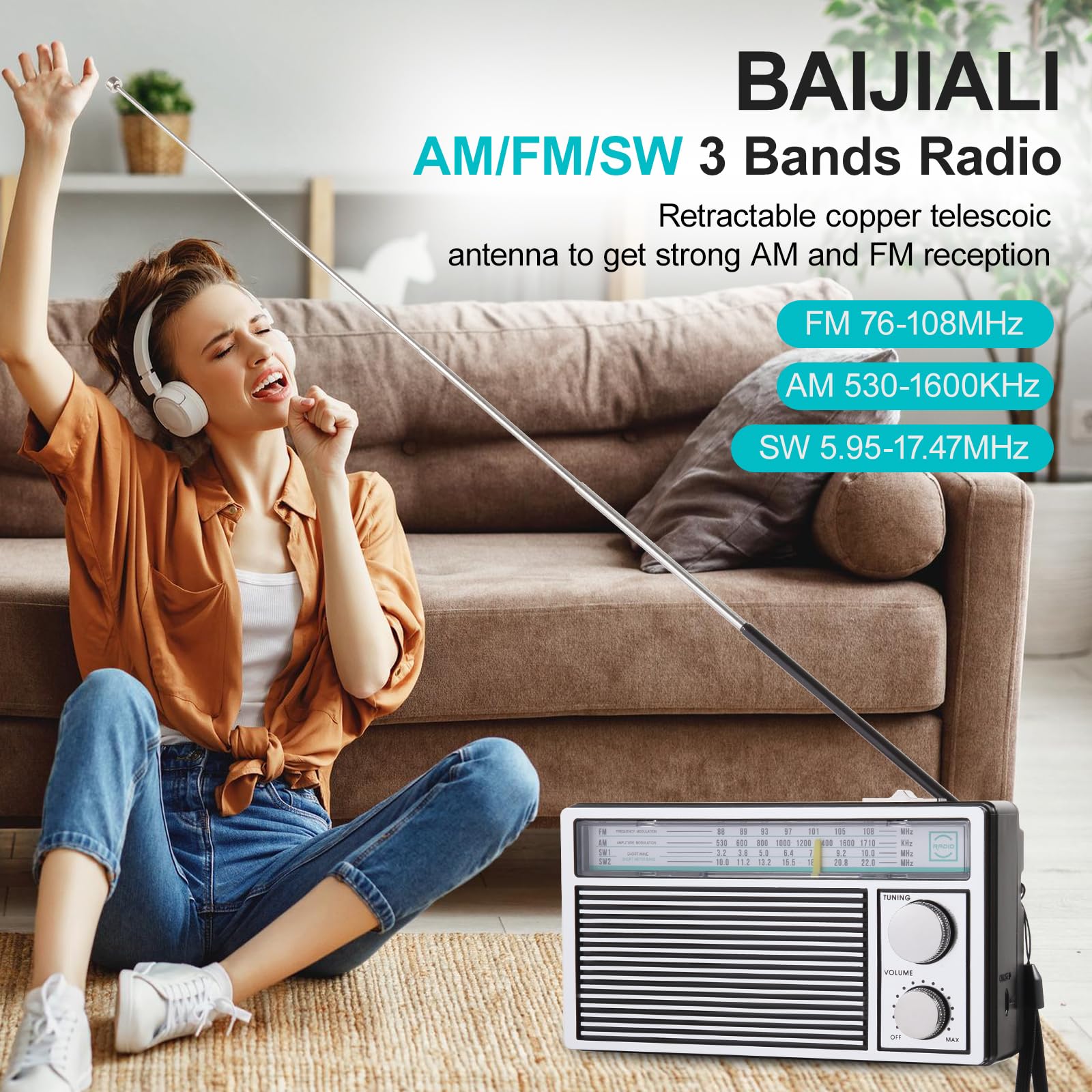 Portable AM FM Radio Retro Transistor Loud Speakers Battery DC Power Indoor Outdoor Emergency Small Gift