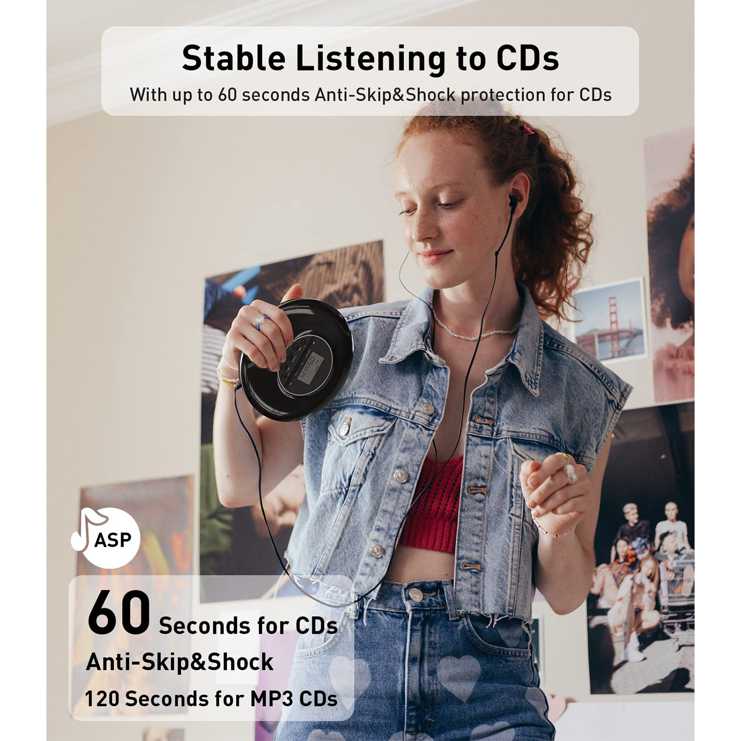 Portable CD Player,Small Music CD Player with Anti-Skip and Shockproof,Personal Compact Disc Player with Headphones (Black)