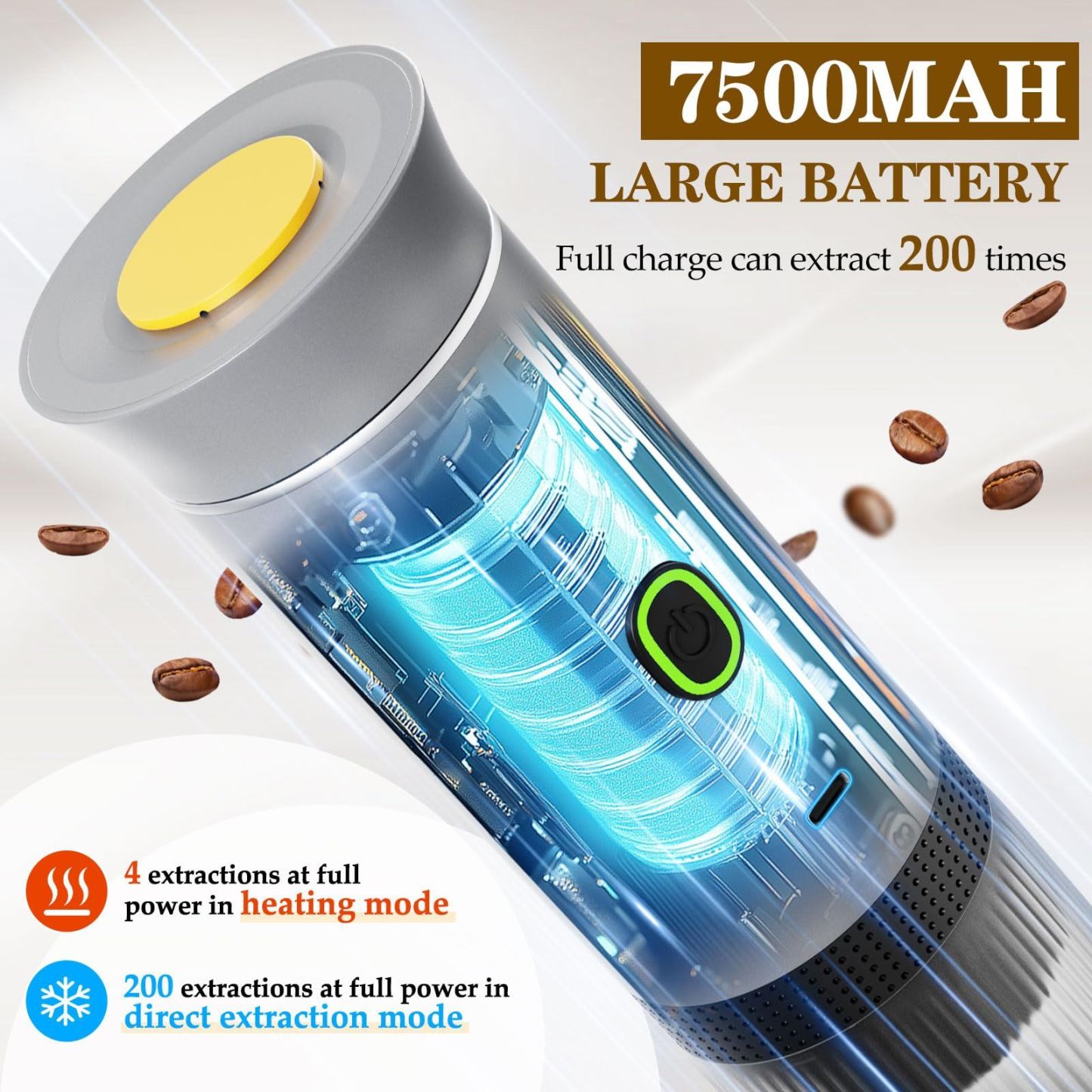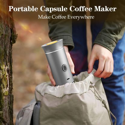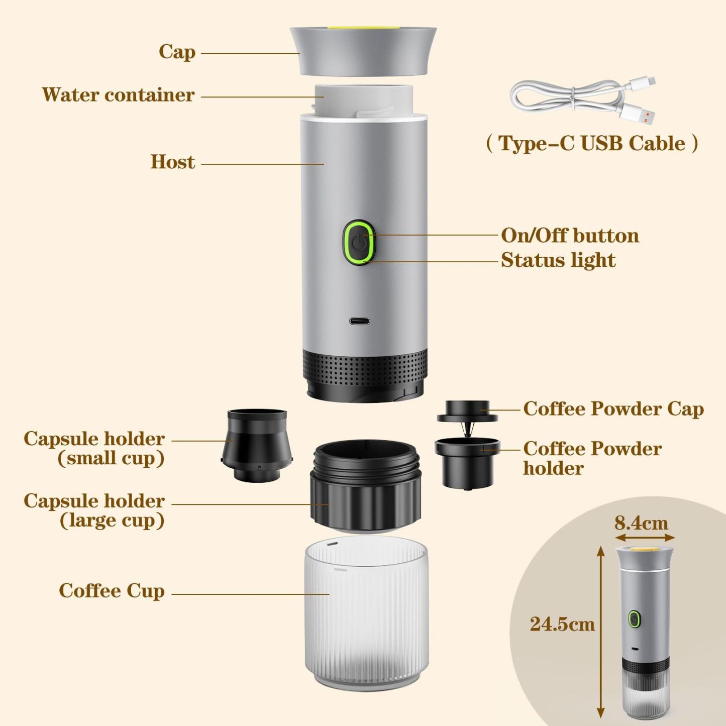 Portable Electric Espresso Mini Machine, Coffee Maker with Ground Coffee and NS Capsule for Machine,Perfect for Hiking,Camping,Office(Silver)
