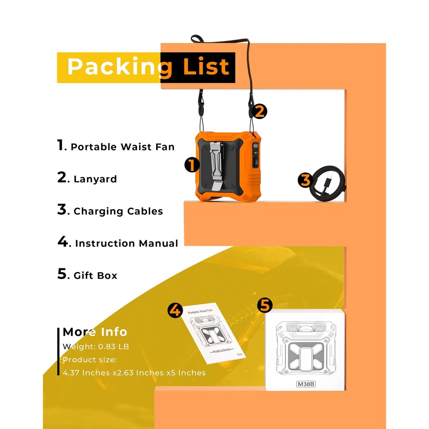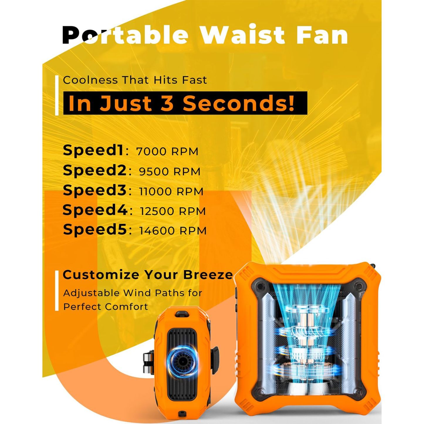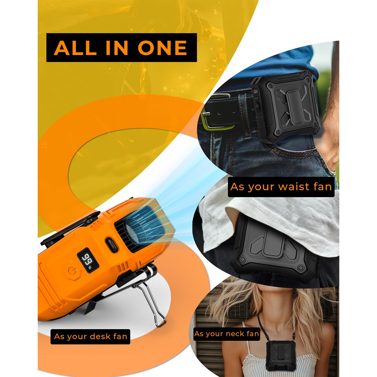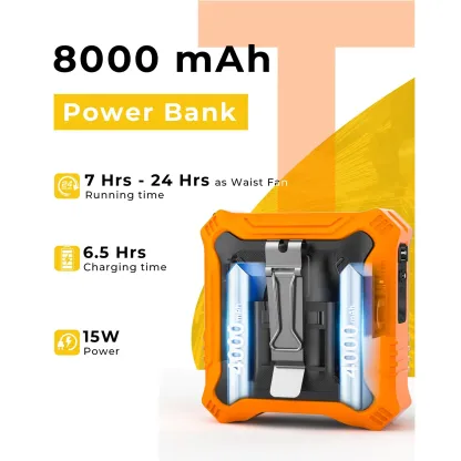 Portable Fan with 5-Speed Settings,Dual-Sided Clip on Wearable Belt Waist Fan,2 Settings including Flashlight,Travel Essential for Outdoor Camping