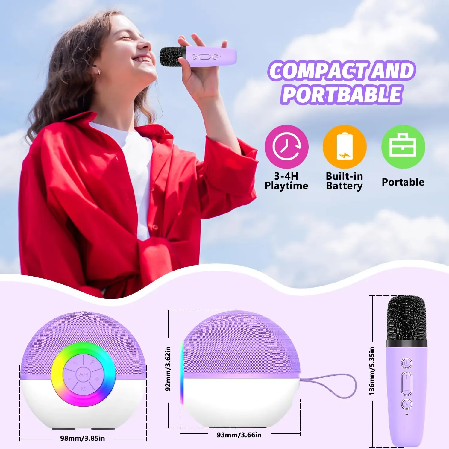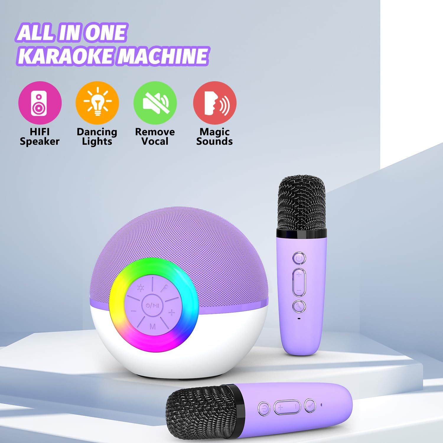 Portable Mini Karaoke Machine for Kids, Bluetooth Speaker with Wireless Microphone,MP3 Player,Perfect for Birthday and Family Parties(2 Mic)
