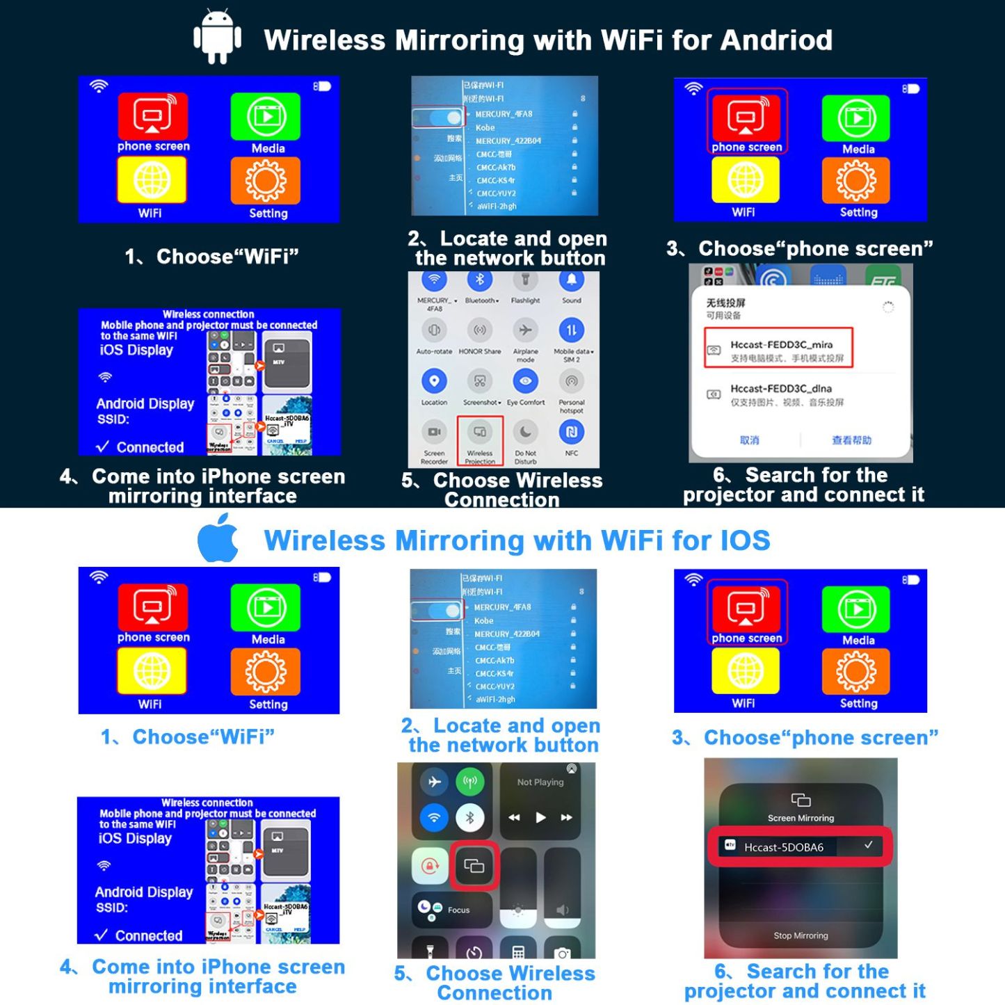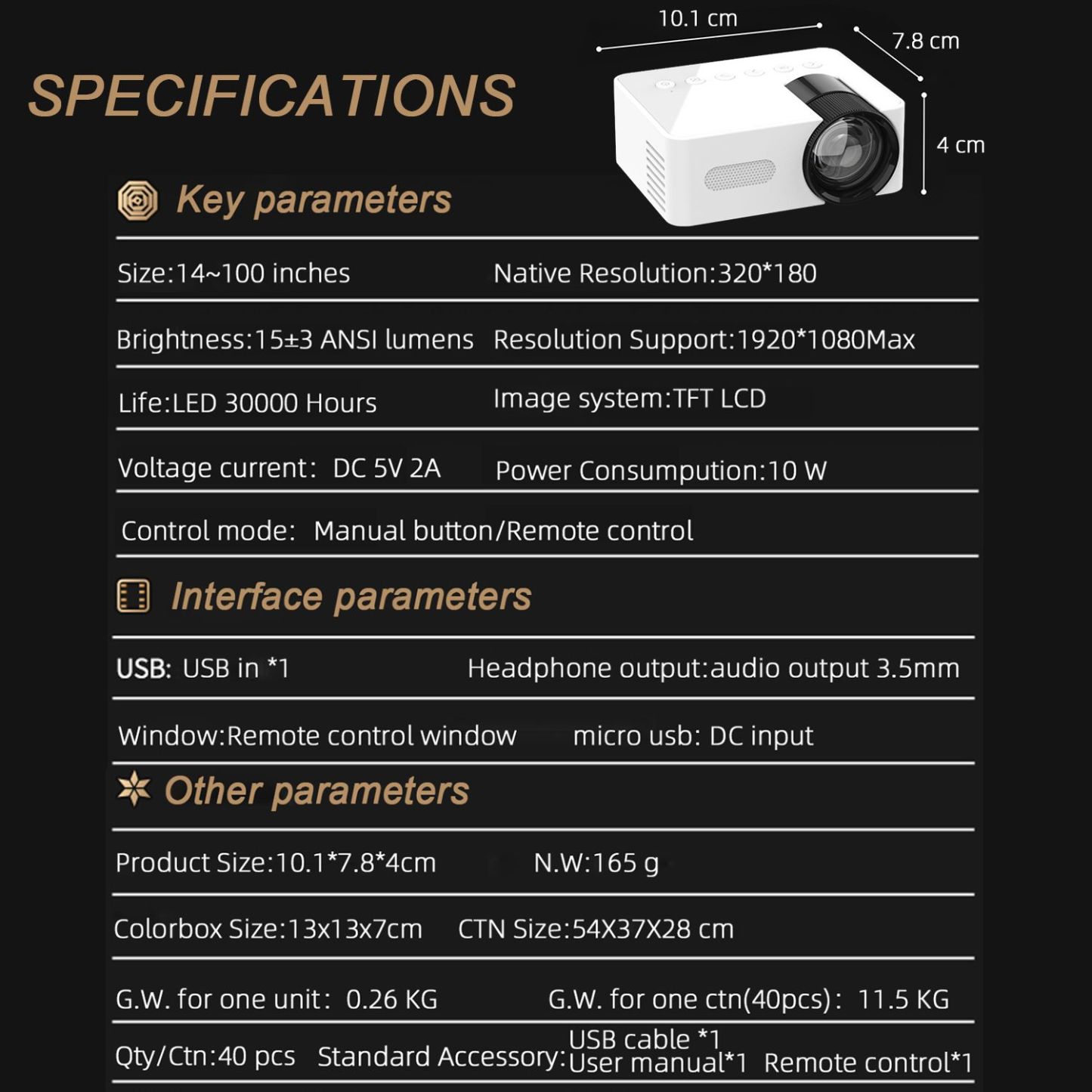 Portable Mini Projector Hd Household Wireless Small Mobile Phone Projection Color White