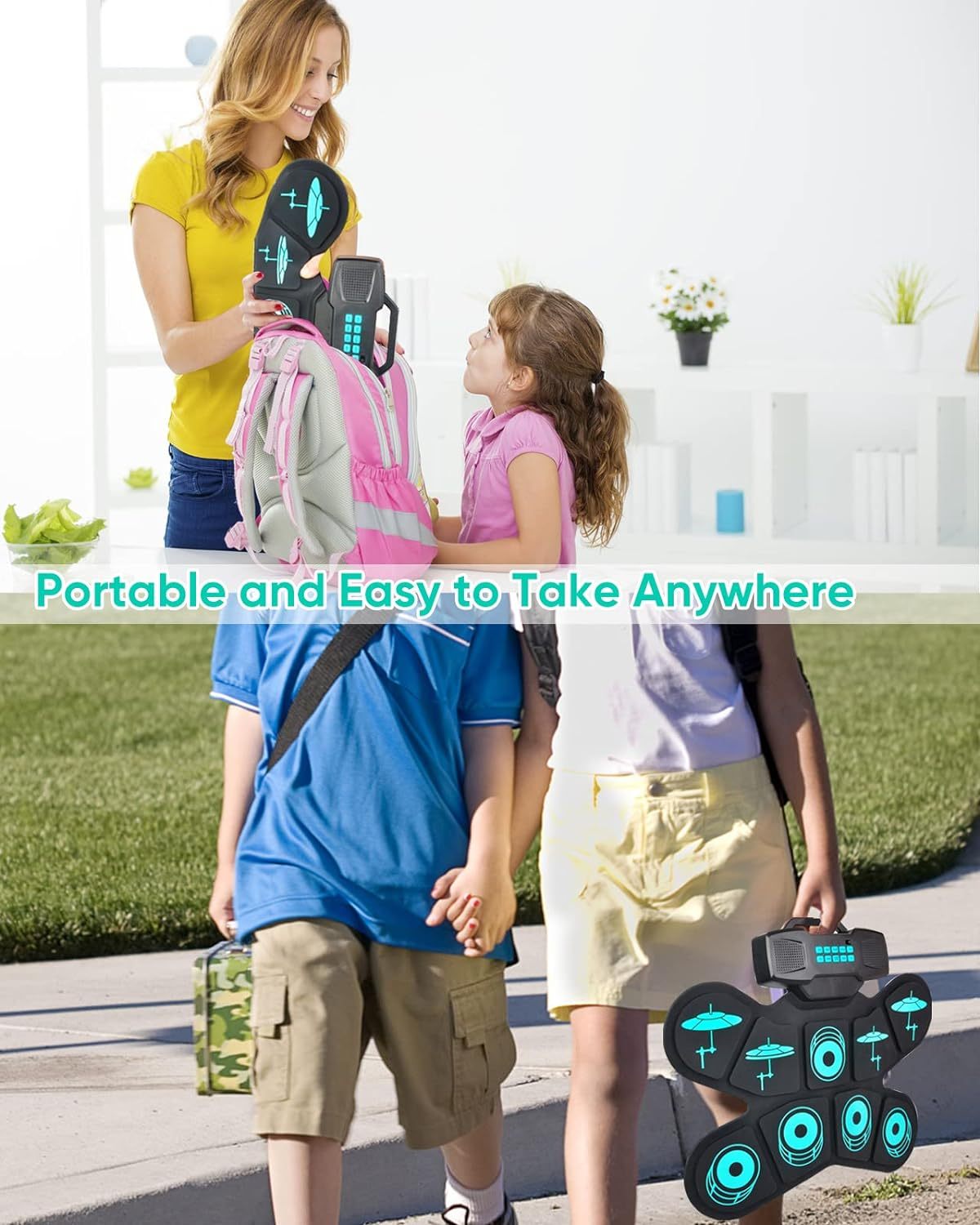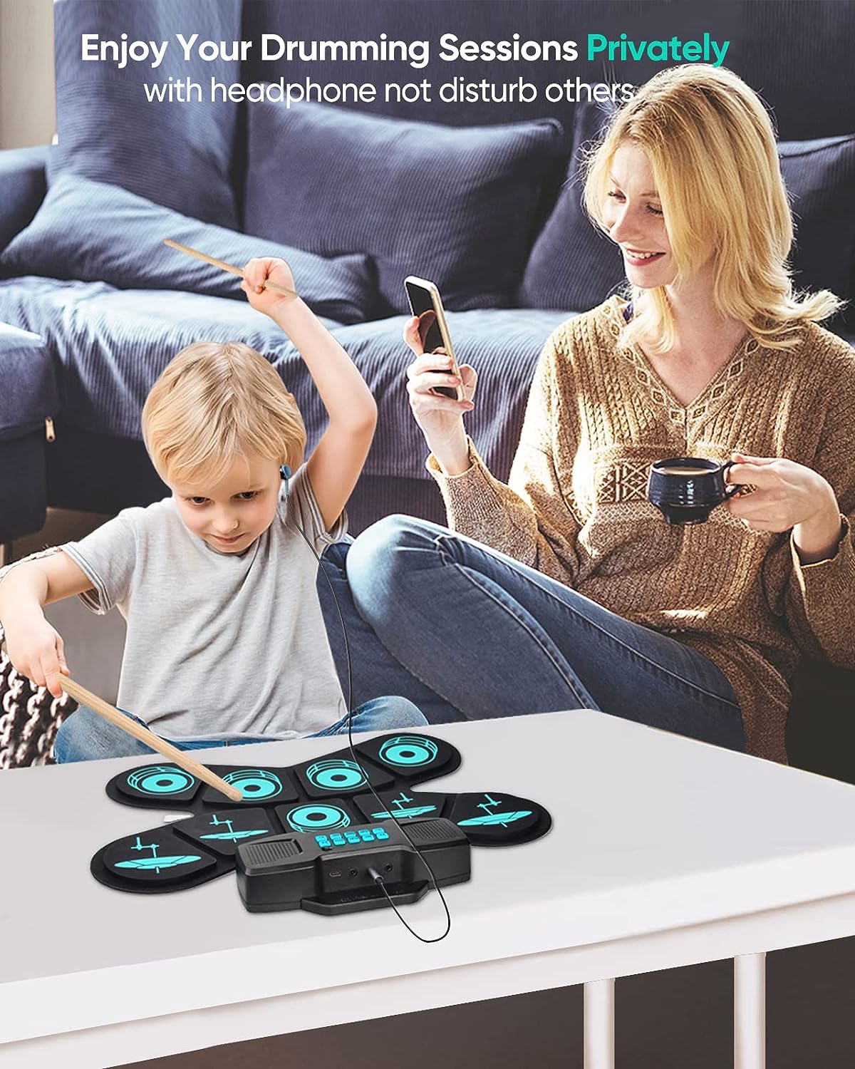 - Rechargeable Battery: Built-in 2000mAh rechargeable batteries, usage time is up to 10 hours after each full charge (charging time is 4 hours). It comes with drumsticks for drum beginners to get started, which is perfect for practicing drum sessions.