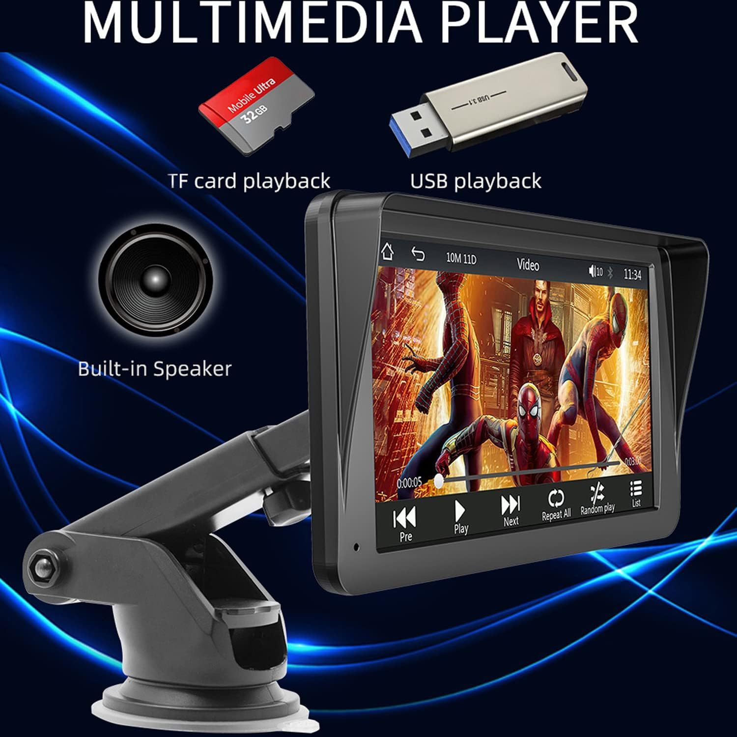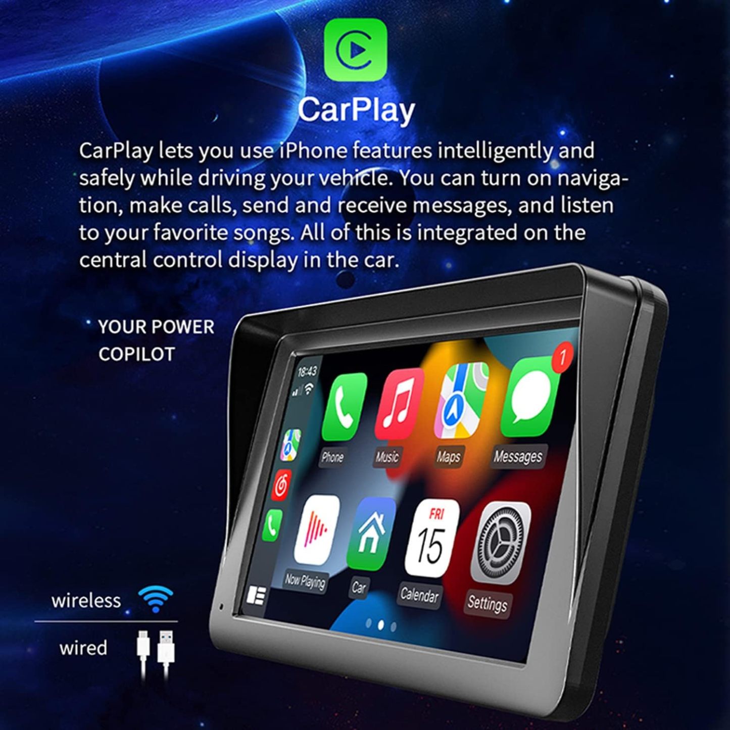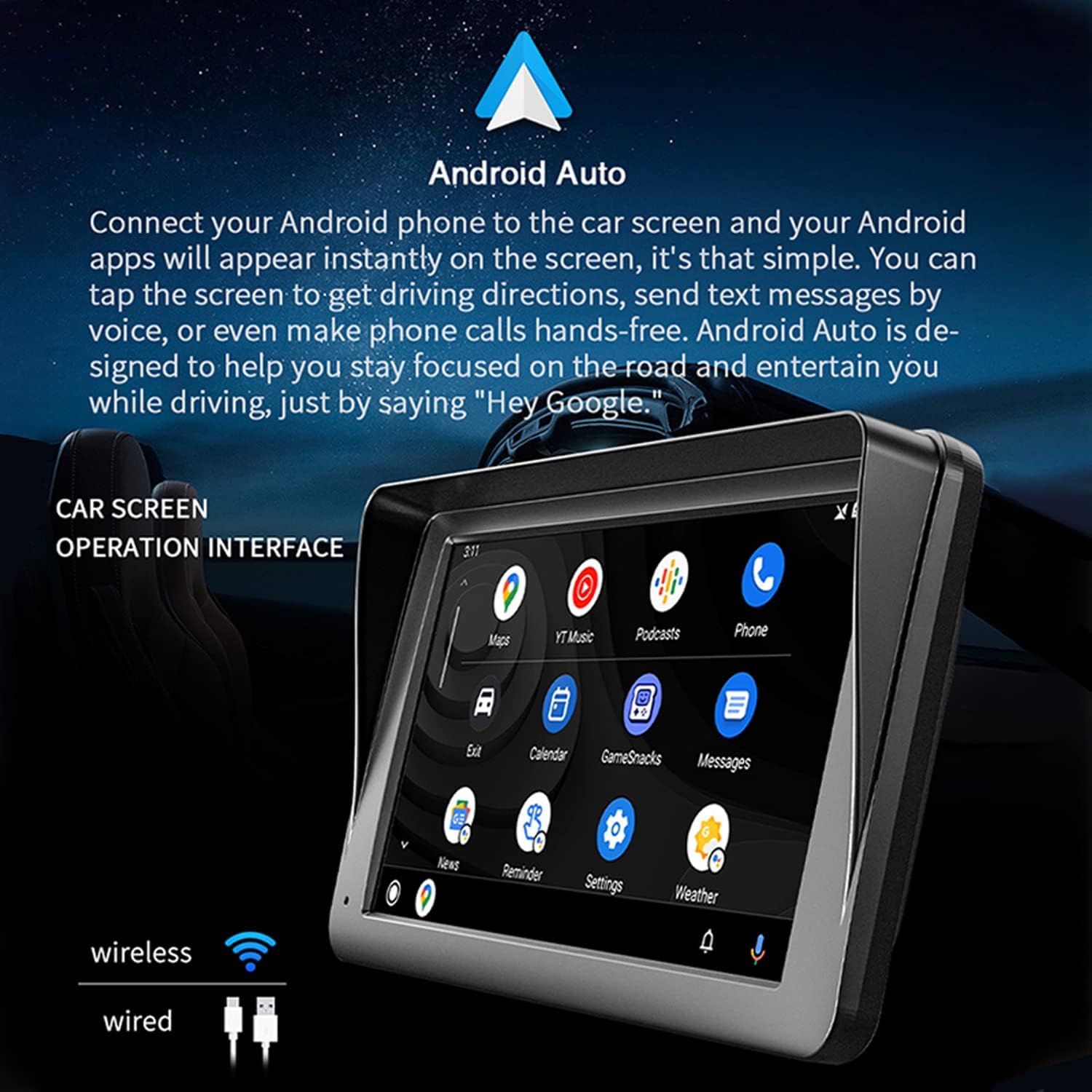 Elevate your driving experience with the Portable Touch Screen Wireless Carplay and Android Auto, a cutting-edge 7-inch car stereo that seamlessly integrates with your smartphone. With built-in wireless Carplay and Android Auto, you can effortlessly connect your device via Bluetooth and access a wealth of features, including map navigation, phone contacts, email, notifications, music playback, and voice control. Enjoy a safer and more convenient driving experience with the Bluetooth 5.0 hands-free system, allowing you to answer calls without ever taking your hands off the wheel or your eyes off the road. For an enhanced audio experience, the FM transmitter enables you to wirelessly transmit audio to your car's speakers, ensuring a rich and immersive sound quality. This versatile car stereo offers three playback modes: USB, TF card, and Bluetooth, providing you with multiple options to enjoy your favorite multimedia content. With compatibility for a wide range of audio, video, and image formats, including MP3, AAC, APE, OGG, M4A, RA, WAV, H263, H264, H265, DIVX HD, AVI, FLV, MKV, MPEG, MP4, WMV9, VC, ASF, TS, QT, JPEG, PNG, BMP, GIF, and TIFF, you can seamlessly access your entire media library. Featuring a sleek and intuitive 7-inch touchscreen display, this car stereo offers a user-friendly interface and a modern, stylish design that complements any vehicle interior.