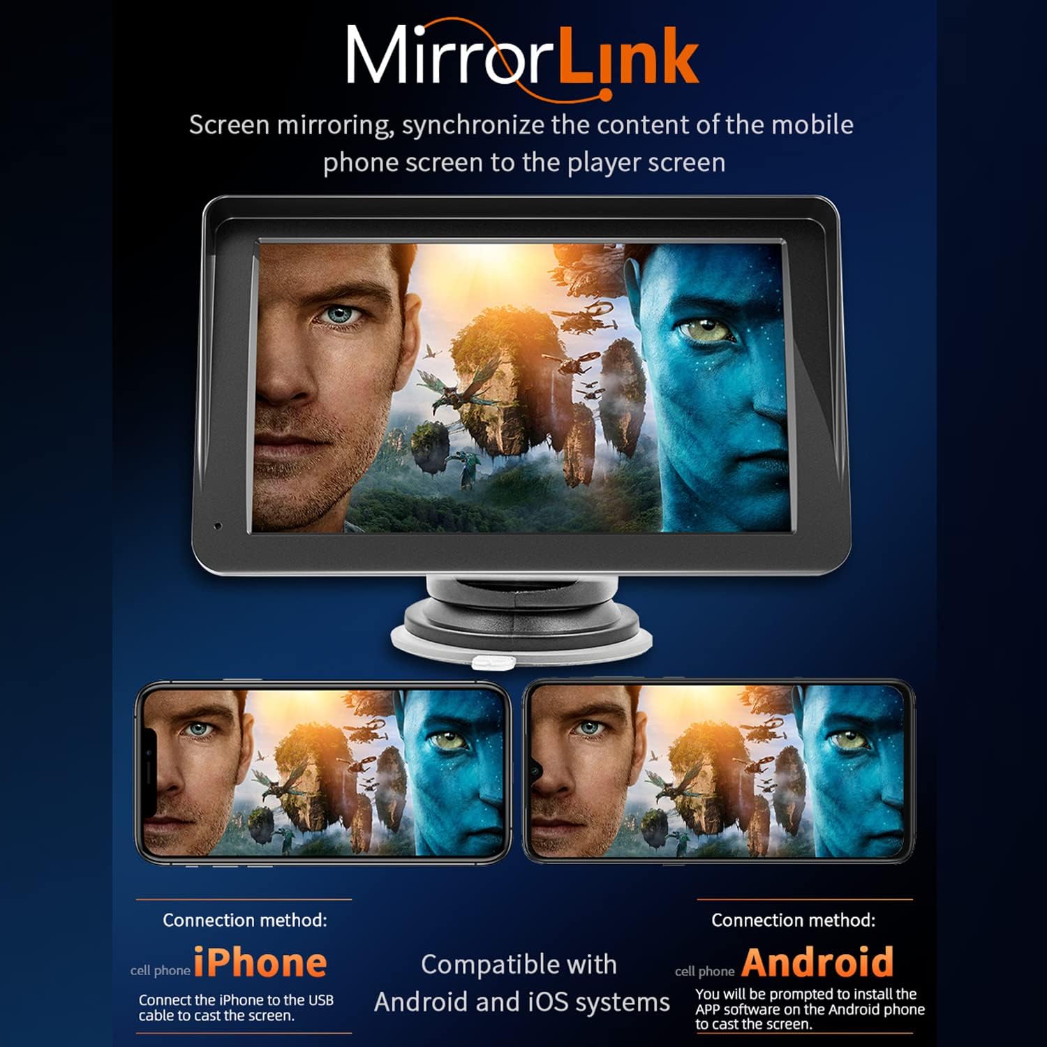 - Three Playback Modes: Carplay monitor support 3 play modes: U disk, TF card, Bluetooth, you can choose one of them and enjoy head unit. No worry about format issue, car monitor can be compatible with most of format, Audio format: MP3/AAC/APE/OGG/M4A/ RA/WAV; Video format: H263/H264/H265/DIVX HD/AVI/FLV/MKV/MPEG/MP4/WMV9/VC/ASF/TS/QT; Image Format: JPEG/PNG/BMP/GIF/TIFF.