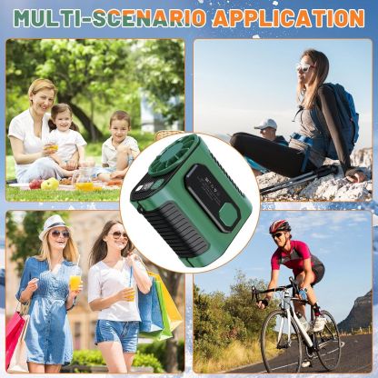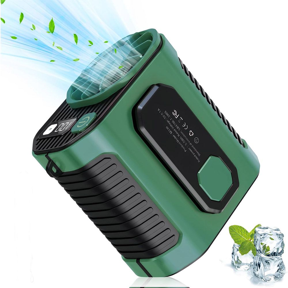 Portable Waist Fan with Clips, LED Light, Battery Display Screen, Cool Clip Fan Under Shirt & Belt Fan, Lightweight, Rechargeable (Green)
