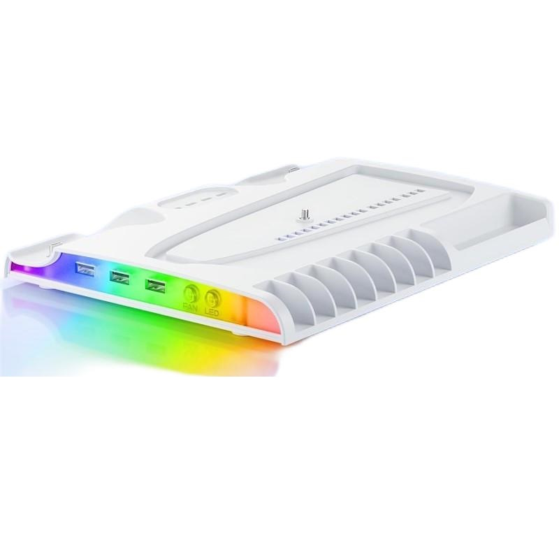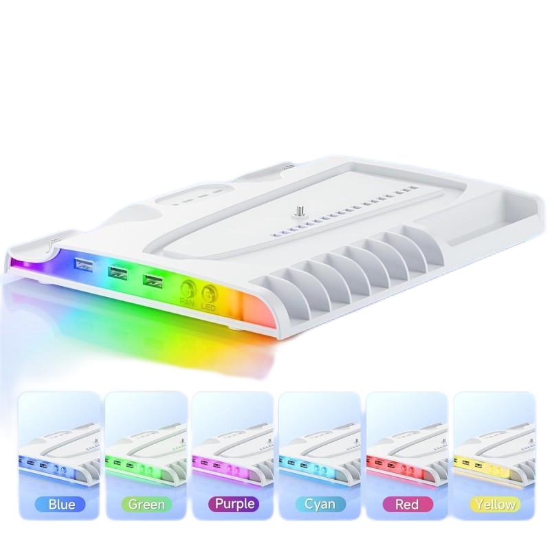 PS5 Slim Cooling Station 2 Controller Charging Dock Cooling Fan Vertical Stand 8 Game Slots Christmas Gift COL White