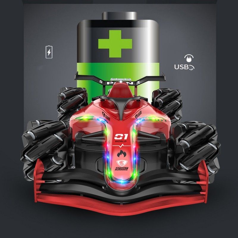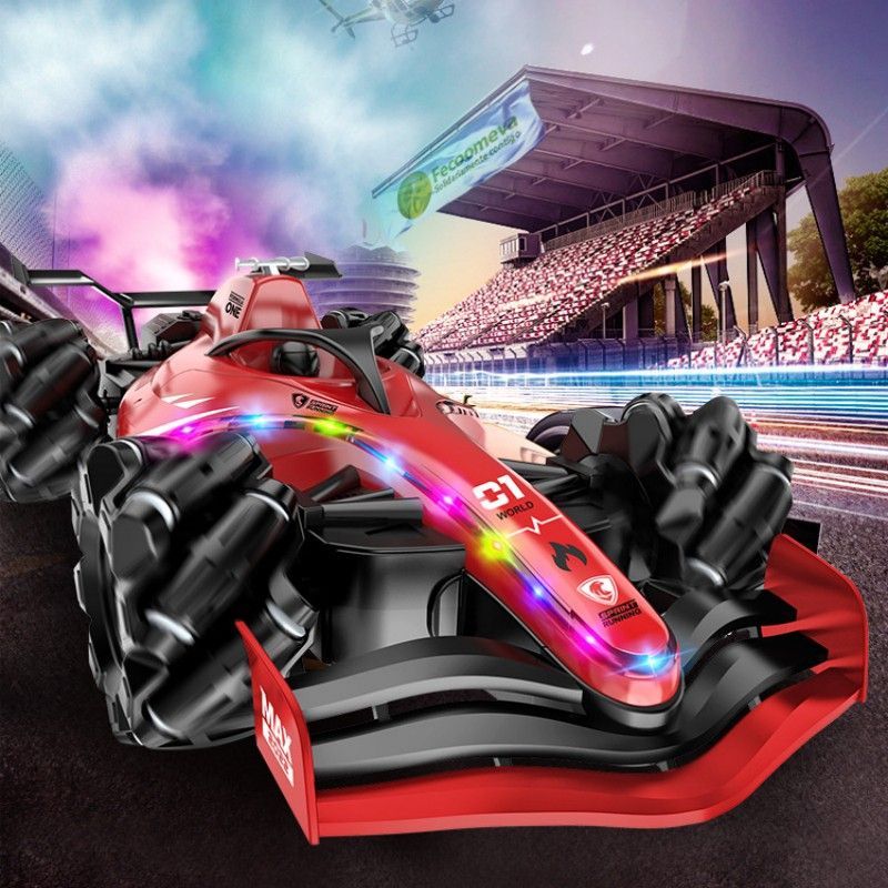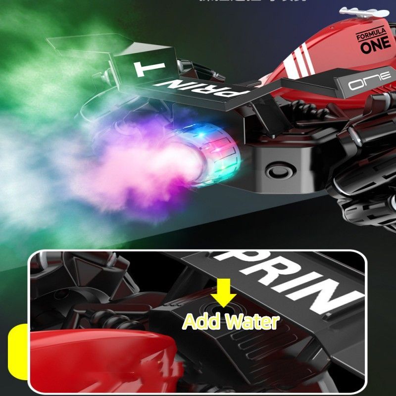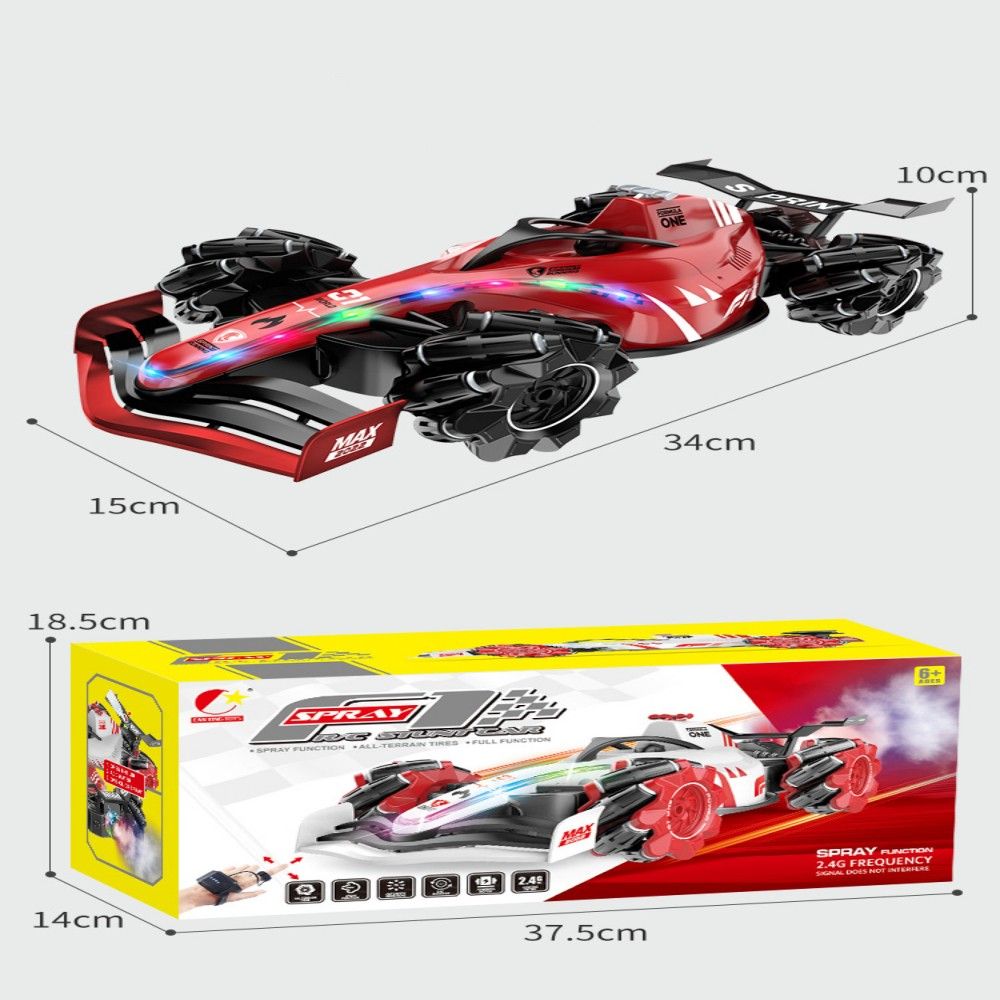 RC Stunt Car 4WD F1 Remote Control Car Rechargeable Spray of light Racing Play Car Gift for Kids Boys Girls-Red