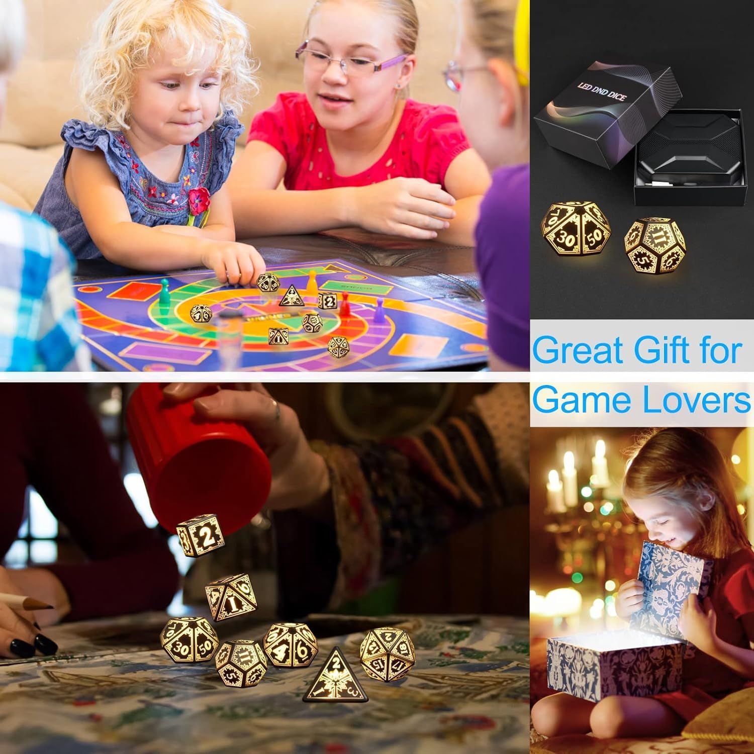 Rechargable Dice Set, Light Up Dice, 7PCS Glowing LED Dice Electronic Dices, D&D Polyhedral Dice Set for RPG Role Playing Table Game