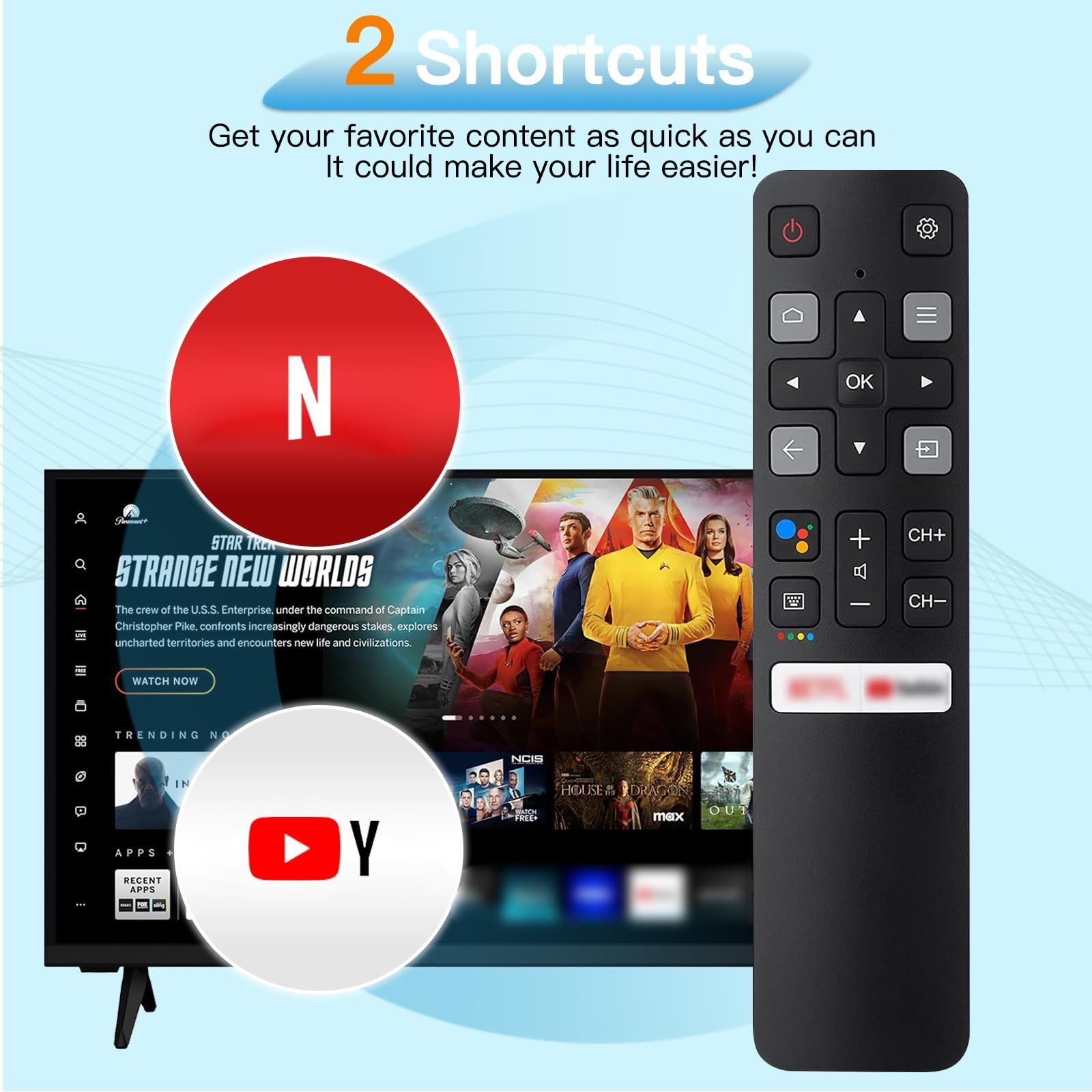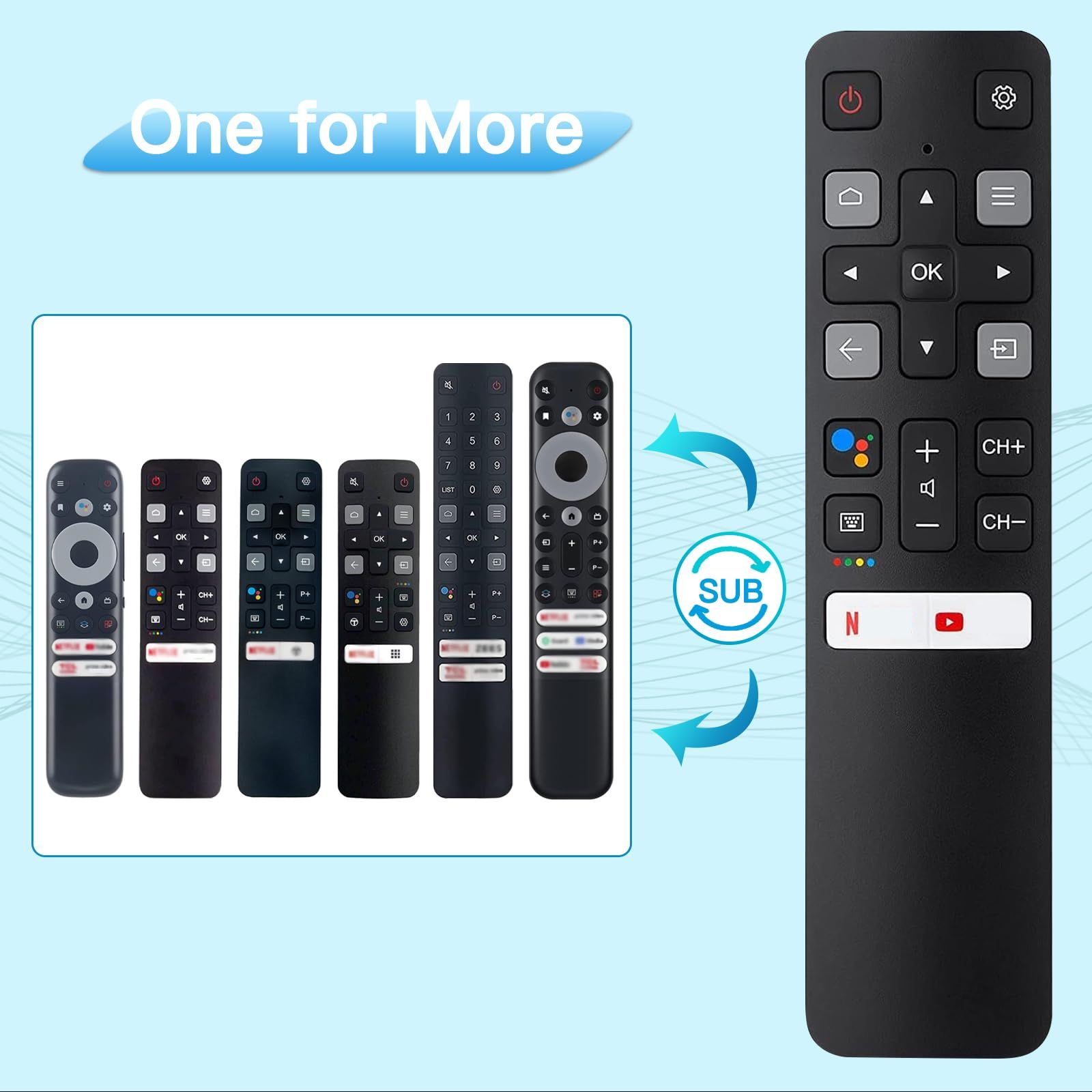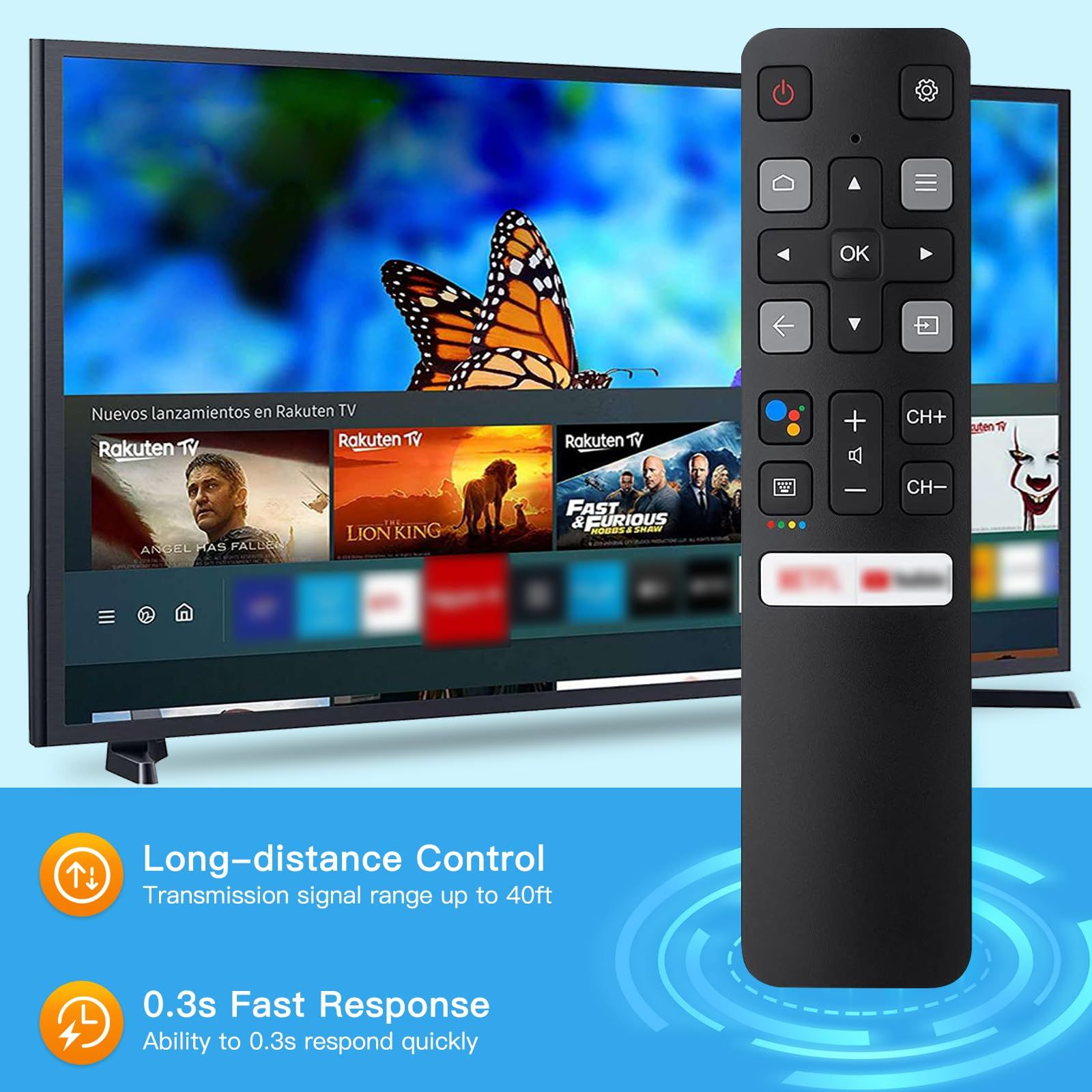 Replacement TCL Remote RC802V for TCL Android TV 4K Smart TV Remote Control No Setup Required,No Voice
