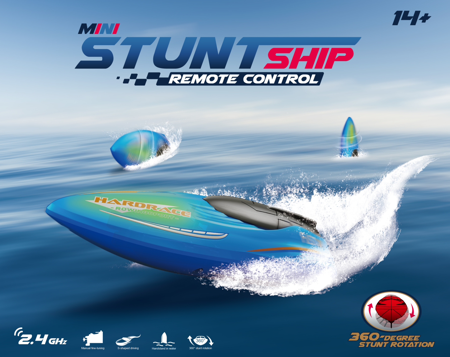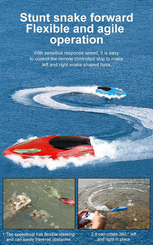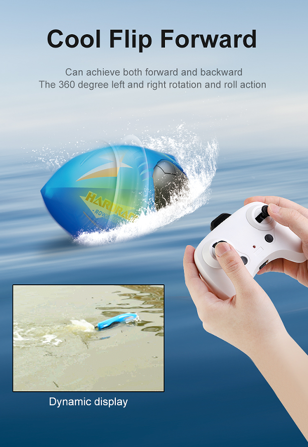 RH707 Remote Control Boat, Left and right 360 Degree rotating double-sided driving light stunt boat 2.4G RC Boats Pool Toys for Adults and Kid, Blue