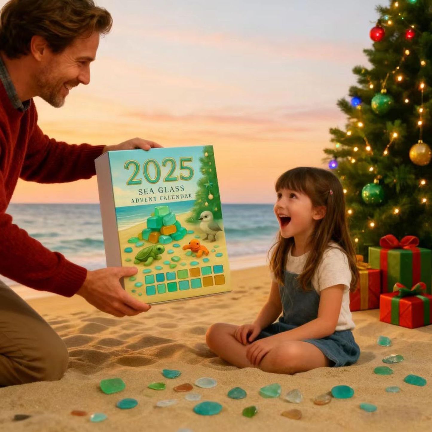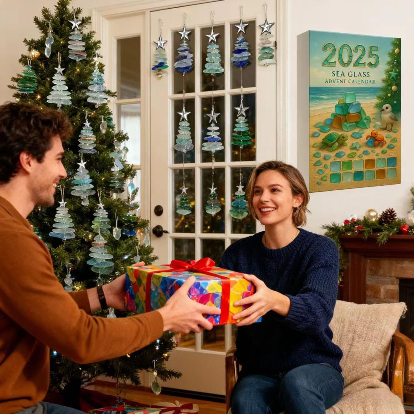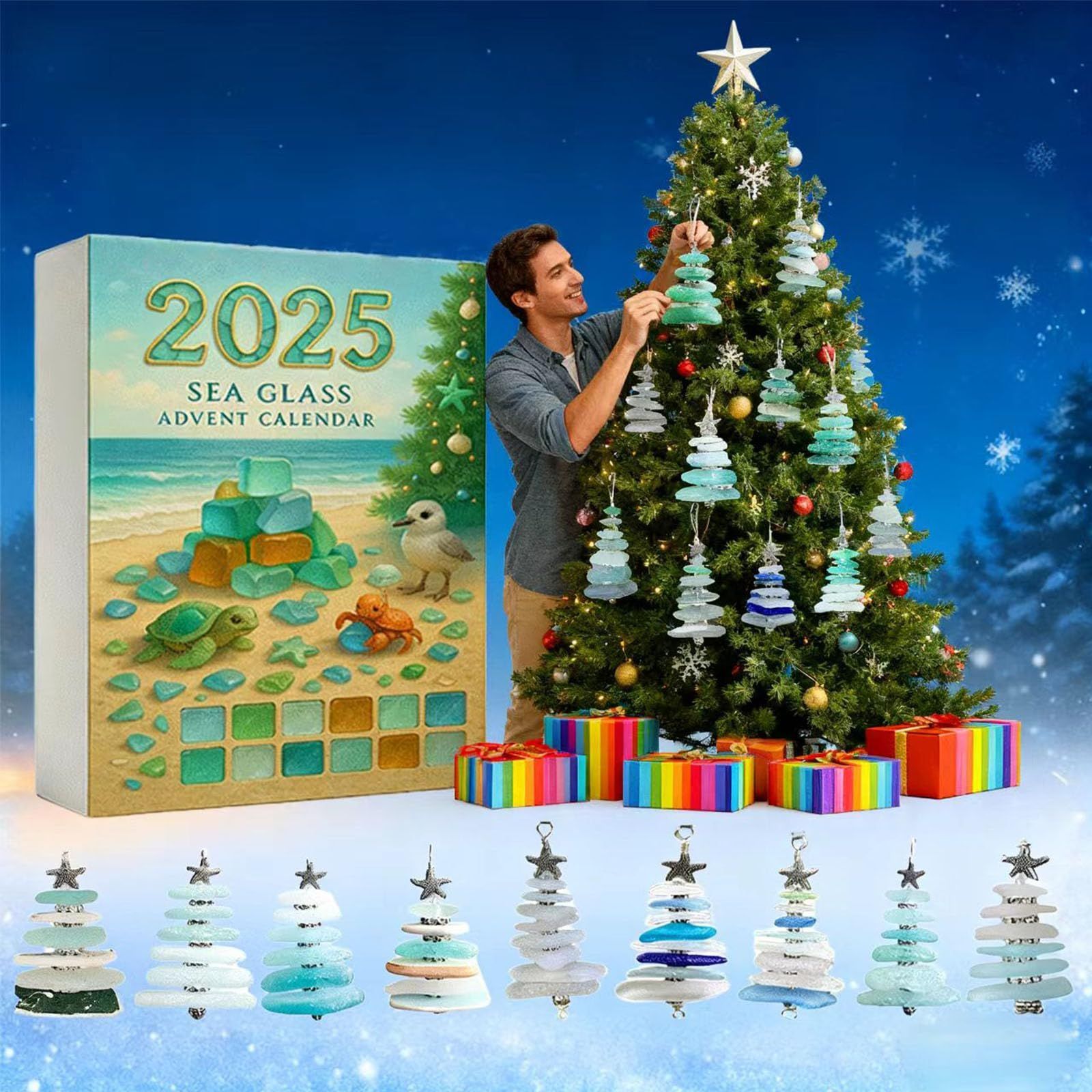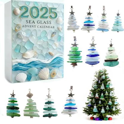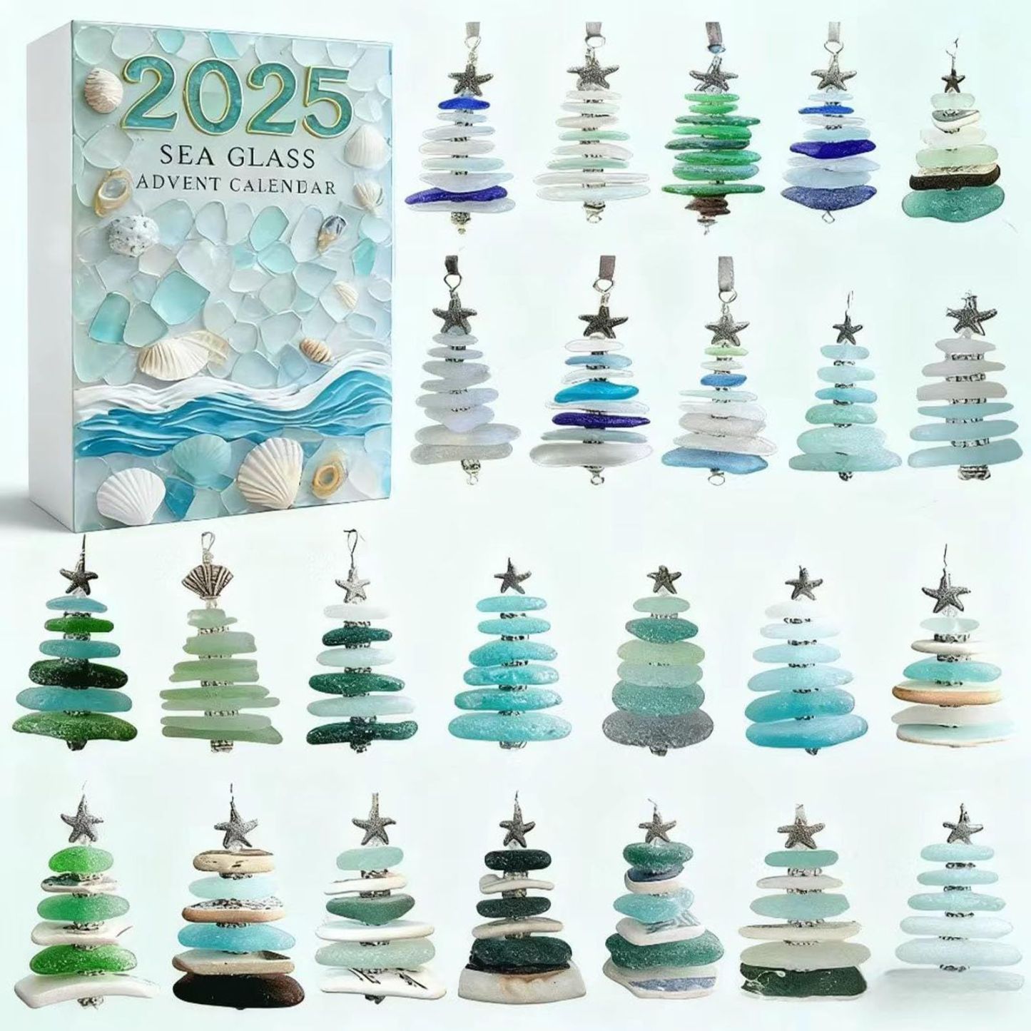 Sea Glass Christmas Trees Advent Calendar,Handcrafted Mini Xmas Trees Decoration Crafts Sea Glass Art,24 Days Christmas Countdown Calendar Ornament