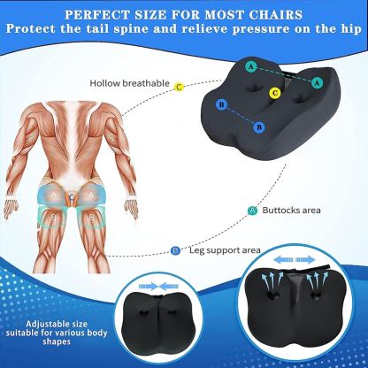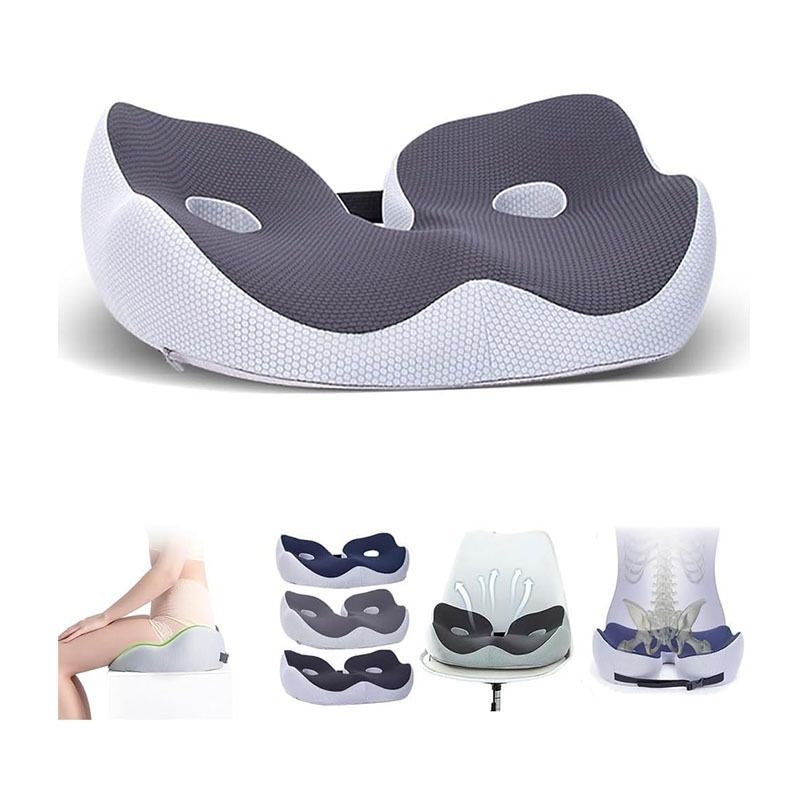 Seat Cushion for Back Relief, Tailbone, Hip, Hamstring, Memory Foam Comfort Ischial Tuberosity Pillow for Home, Office (Grey)