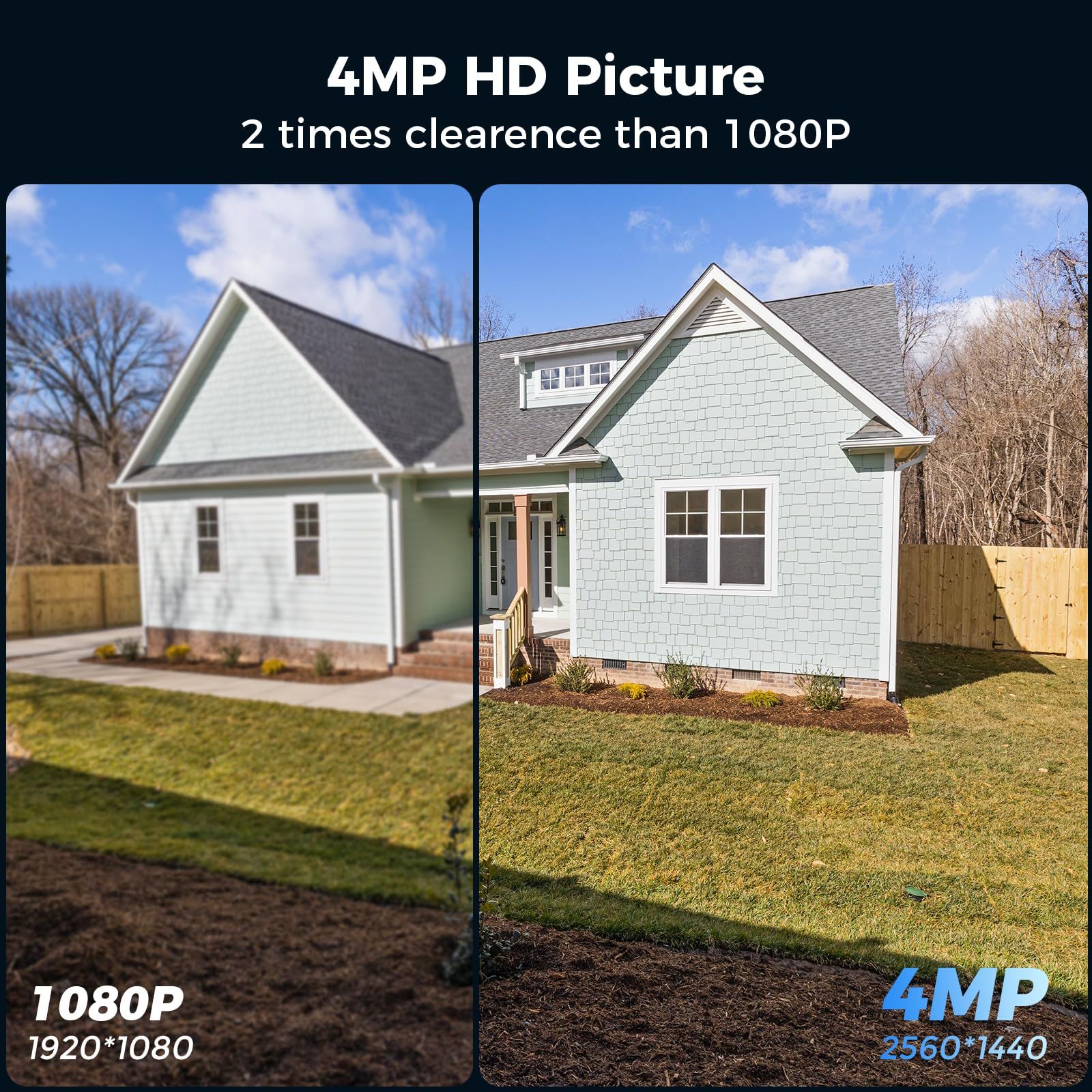 - 4MP HD Video & Full Color Night Vision : With its 4MP(2560*1440, almost 1.5 times than 1080P) high-definition lens, led spotlight and high quality full-color night vision capabilities, this hd security camera provides crystal clear images around the clock. Whether it's daylight or darkness, you'll always have a detailed view of your surroundings. The wifi wireless security camera is compatible with Hiseeu other wireless system.