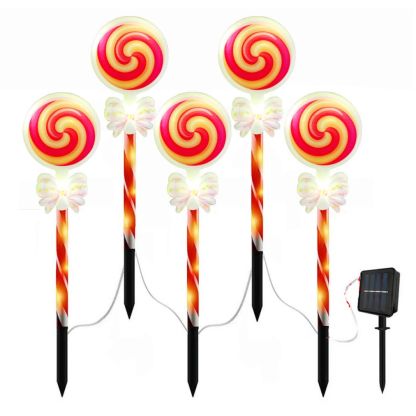 Set of 5 Candy Cane Design Stake Lights for Pathway Backyard Decor ArtCreativity Outdoor Christmas Solar Path Lights 8 LED Modes