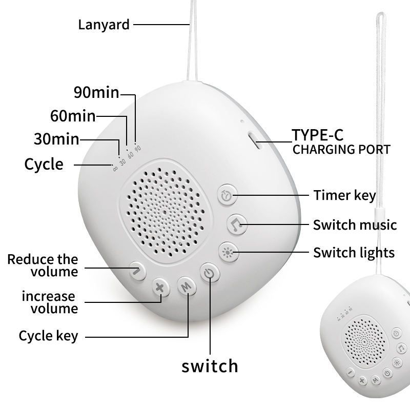 Sleeping White Noise Machine Rechargeable Soothing Sounds Machine Portable Baby Sleep Sound Machine With Night Light
