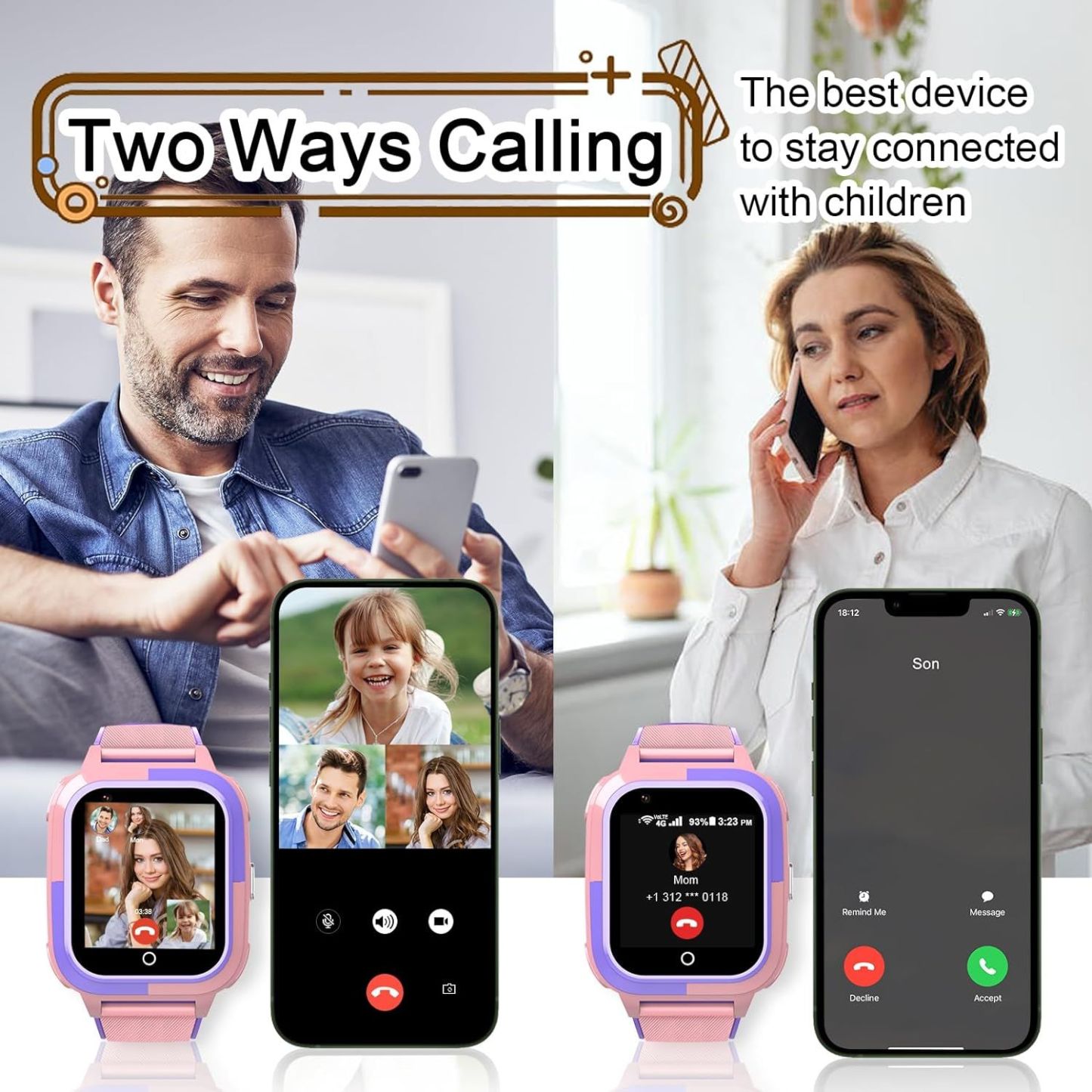 Smart Watches for Boys Aged 3-12 with Whatsapp Calling, 4G Kids Smartwatches GPS Tracker Message SOS Camera and Pedometer Children (Purple)
