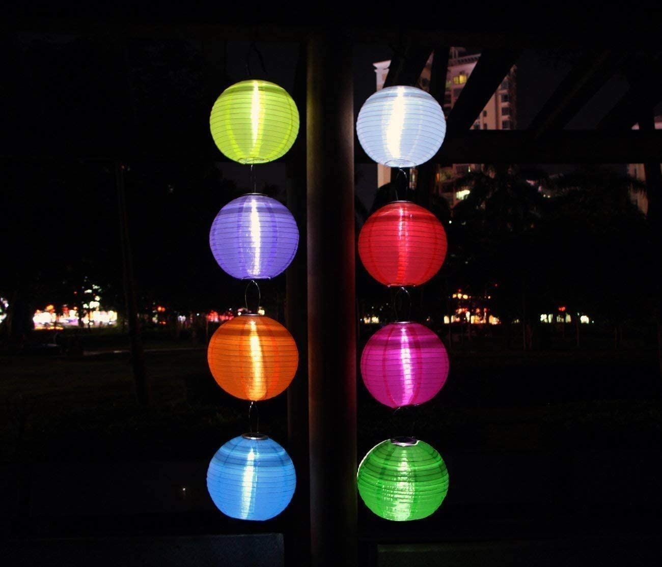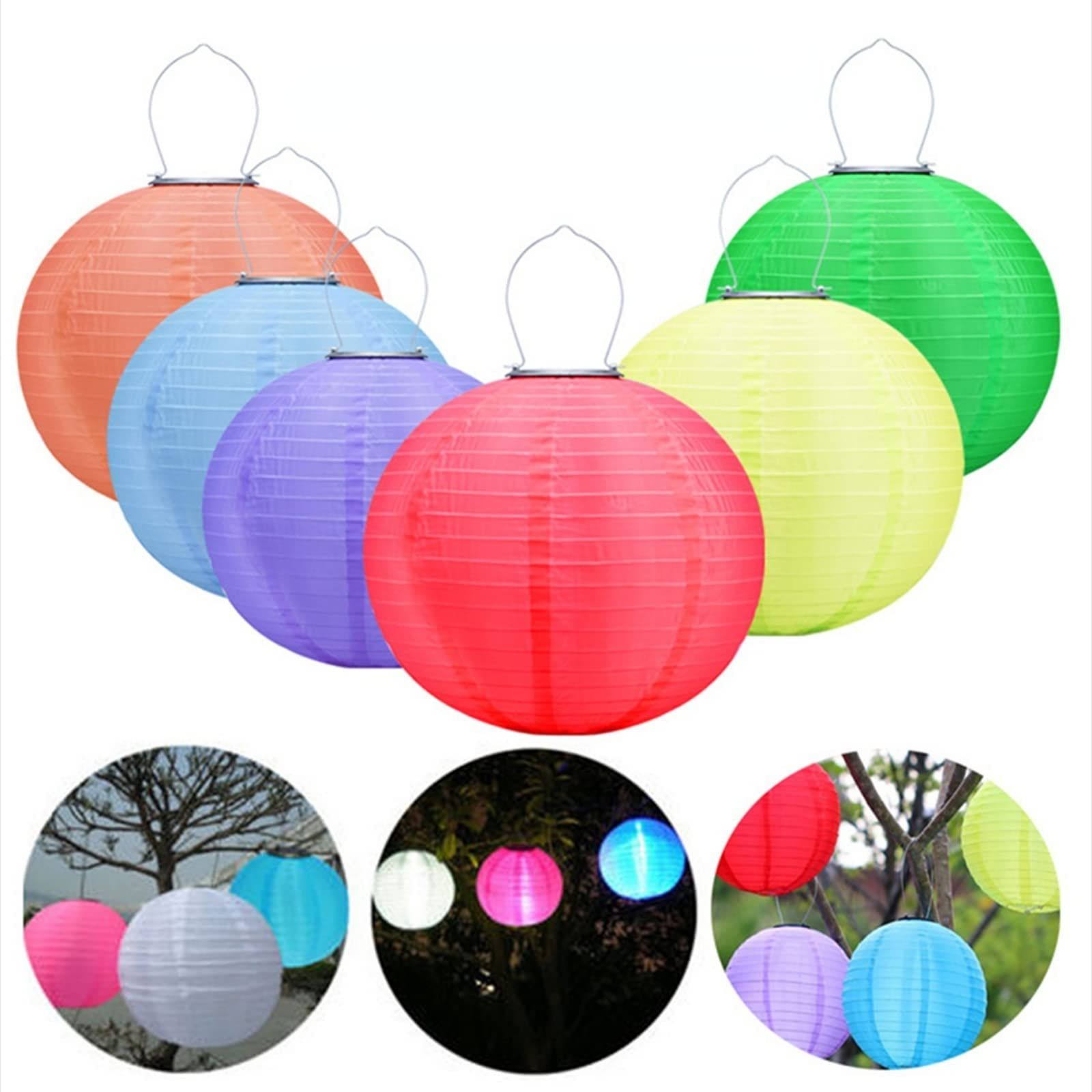 Solar LED Lantern 30cm 6 Pcs Waterproof Hanging Outdoor Garden Spring Festival Cloth Asian Light Lamp Decoration
