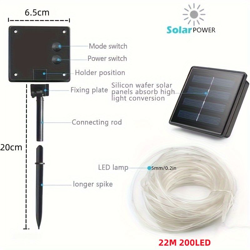 Solar LED String Lights,22M 200 LED Waterproof Rope Light 8 Modes Colorful Outdoor Lights for Garden,Camping,Christmas,Halloween Decorations