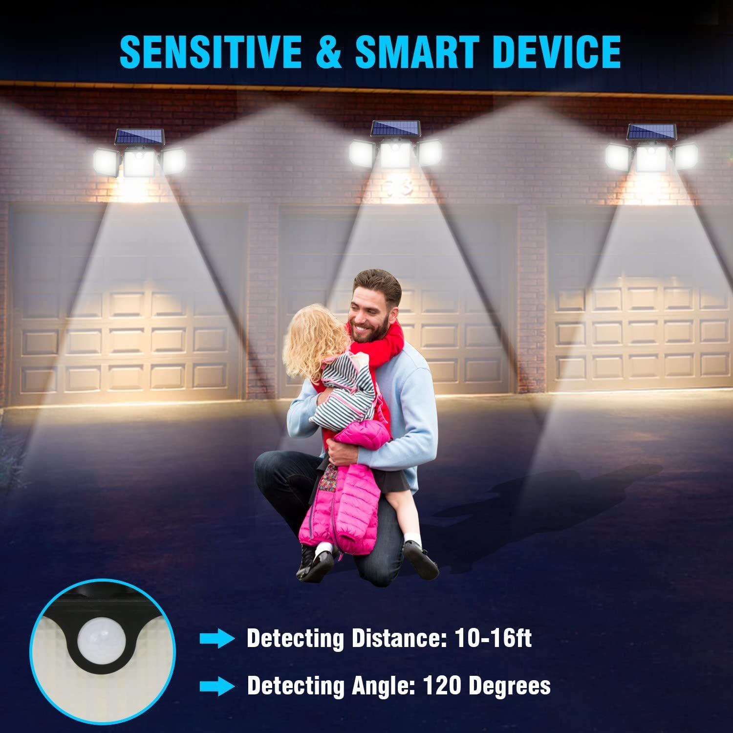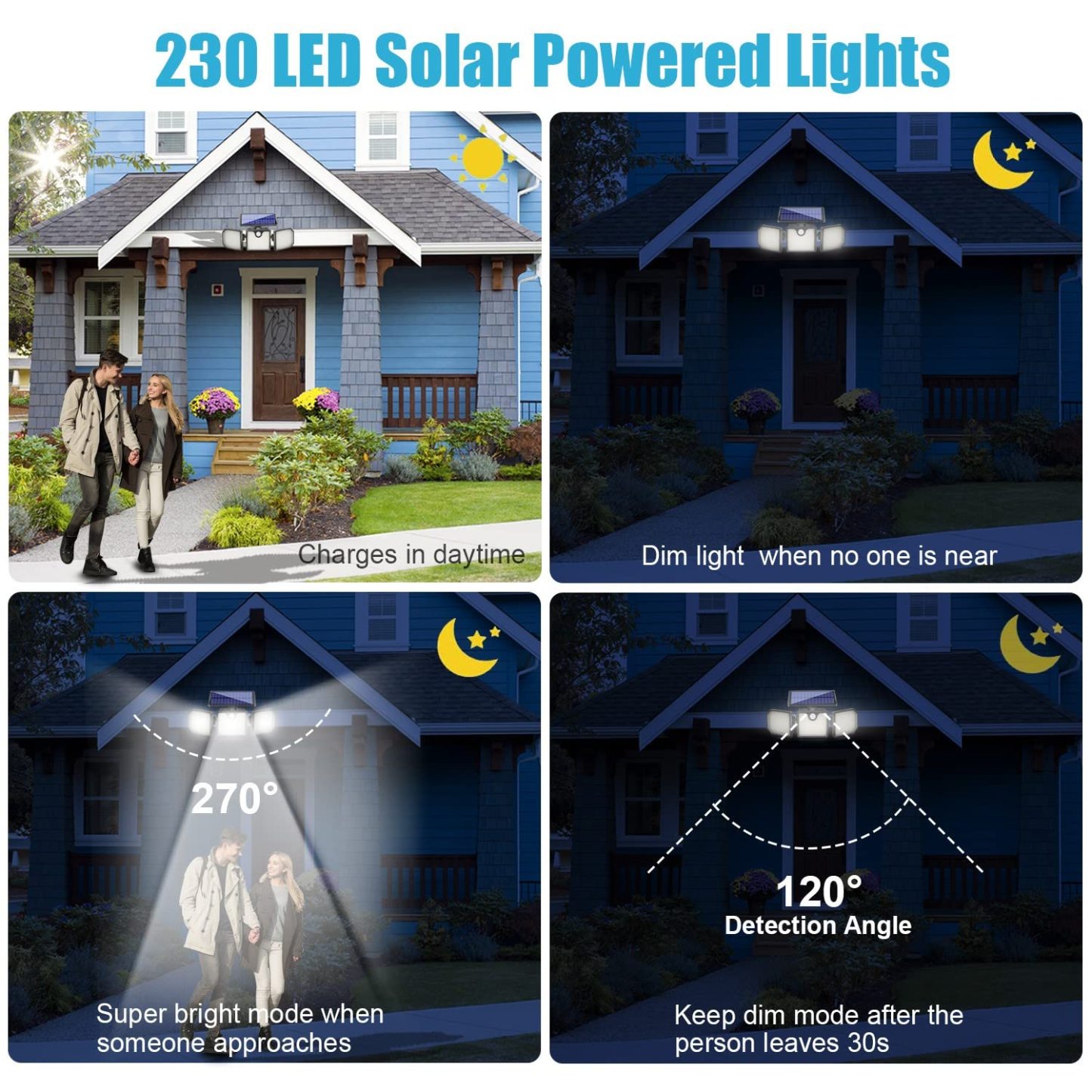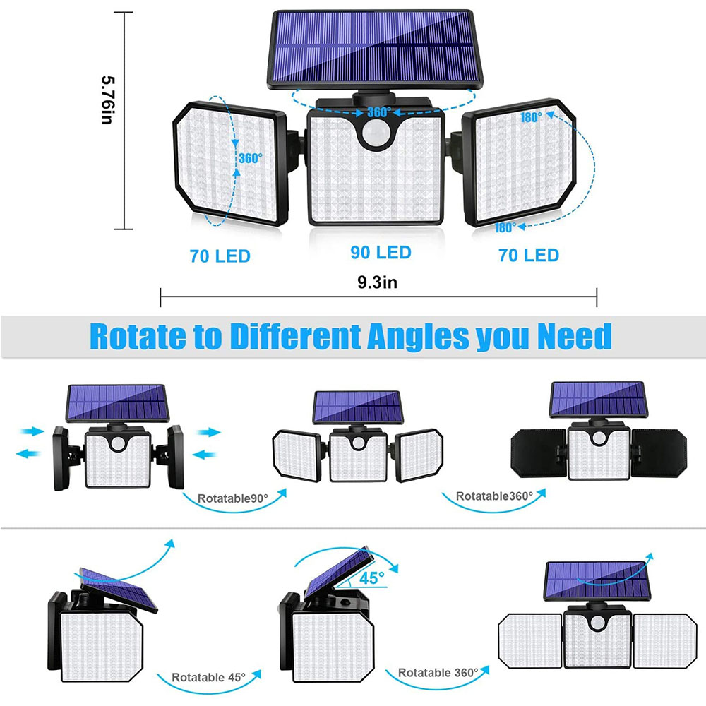 Solar Light for Home 230 LED Solar Wall Lamp IP65 Waterproof Outdoor Street Lamp 3 Heads with 270 Wide Angle Adjustable 1500LM Motion Sensor Lights