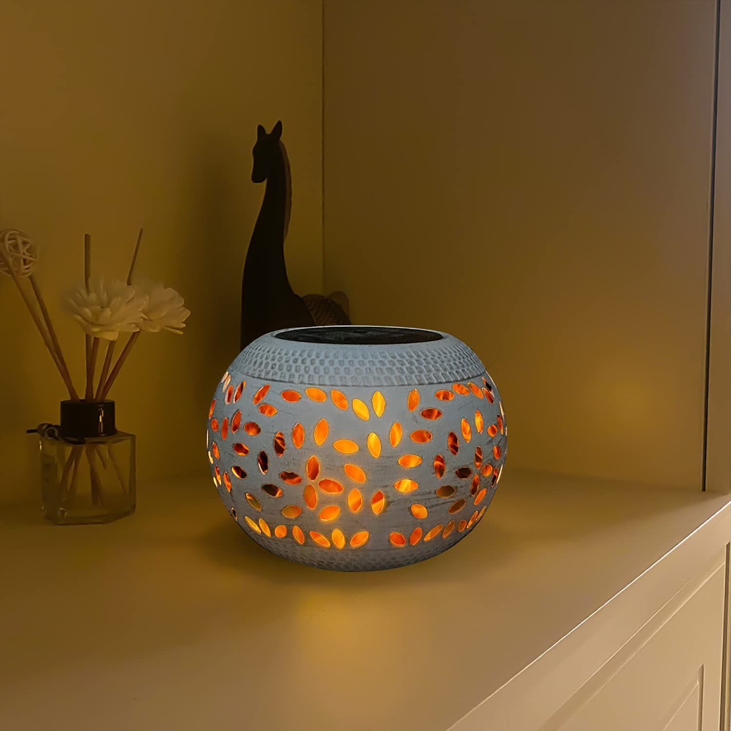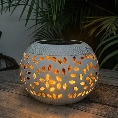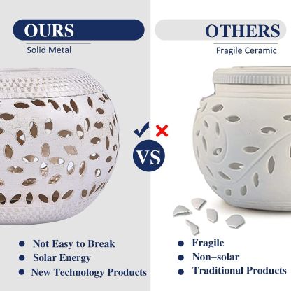 Solar Powered Table Lights Waterproof Dancing Flame Lantern Metal Decorative Light for Patio Yard Pathway White