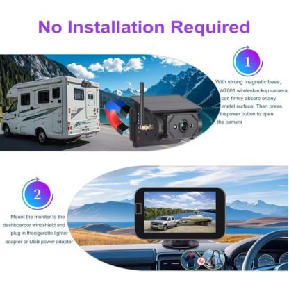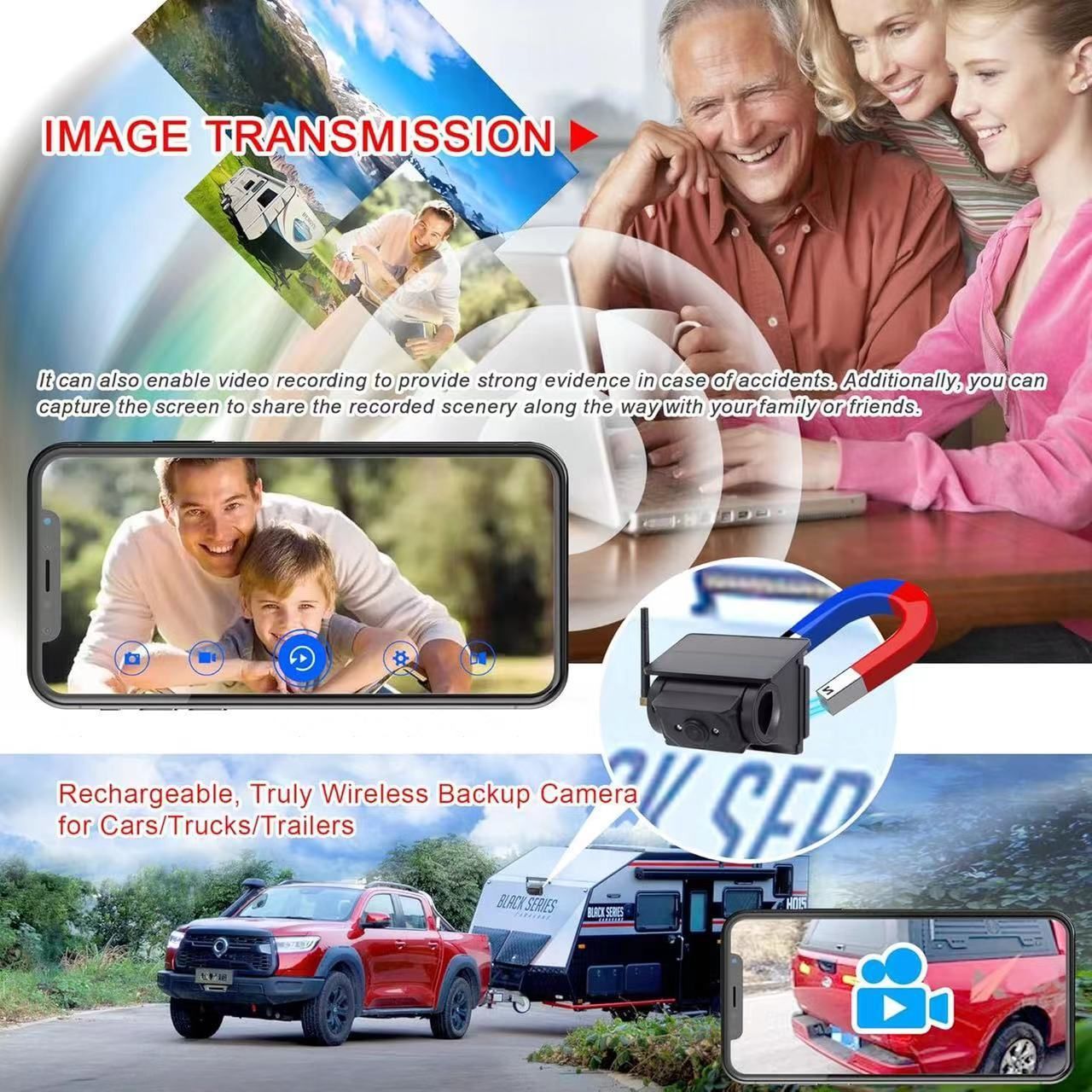 - Magnetic Strength and Easy To Install and Remove: The trailer backup camera base is equipped with 12 round N52 neodymium magnet. Wireless trailer camera is covered with a soft rubber layer that not only resists oxidation and corrosion but also protects your car's paint from scratches. You can easily install it on steel body surfaces without the concern of it coming loose on bumpy roads, thereby saving installation time.