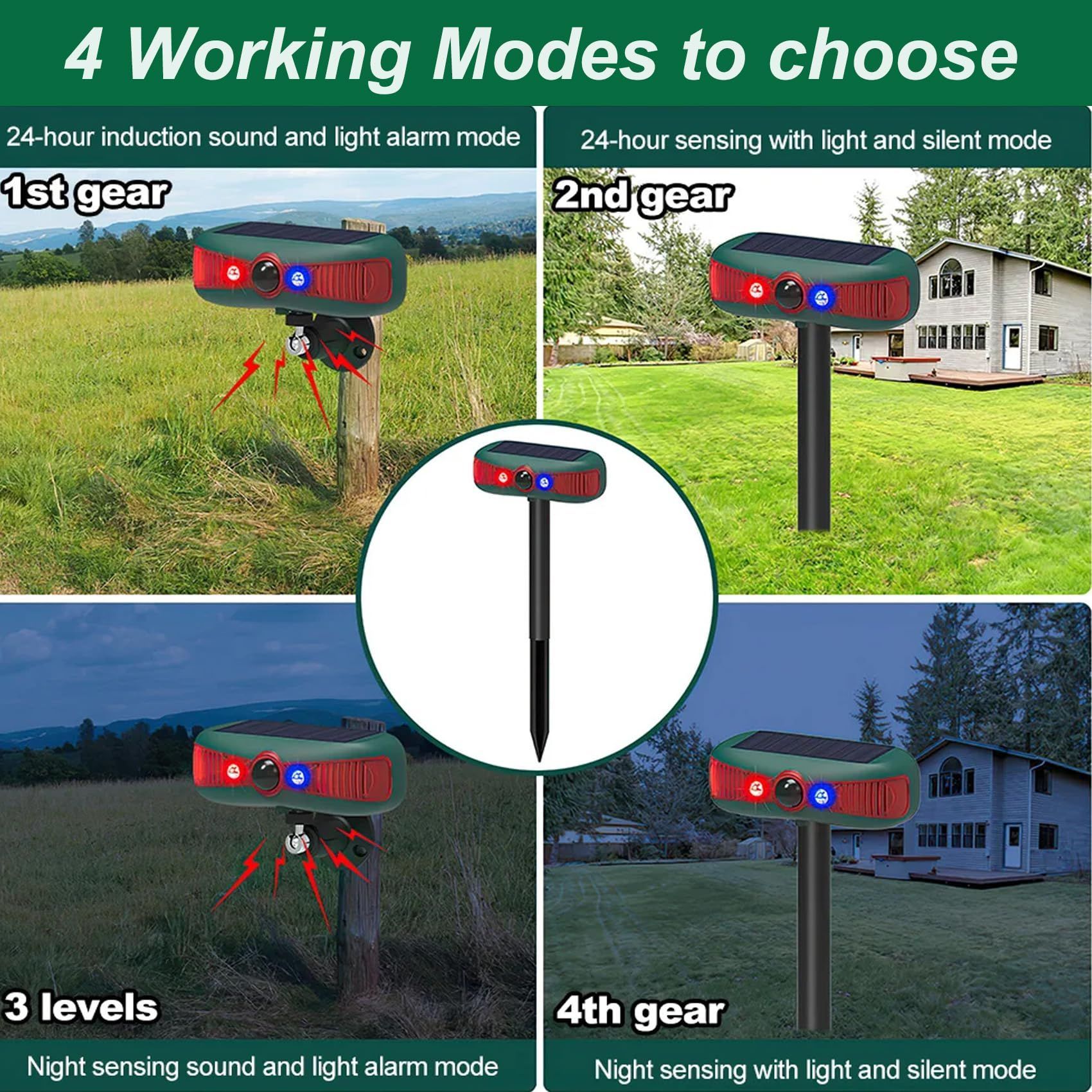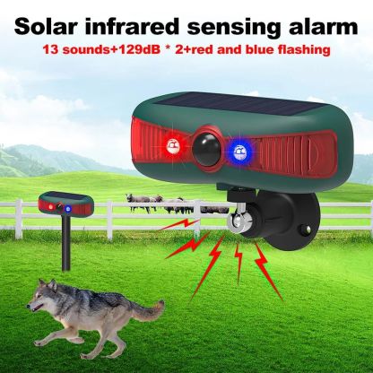 Solar Strobe Infrared Motion Sensor Alarm Detector 129db 13 Sounds LED Flashing Warning Light Dual Speaker Outdoor Security Alert Farm Yard