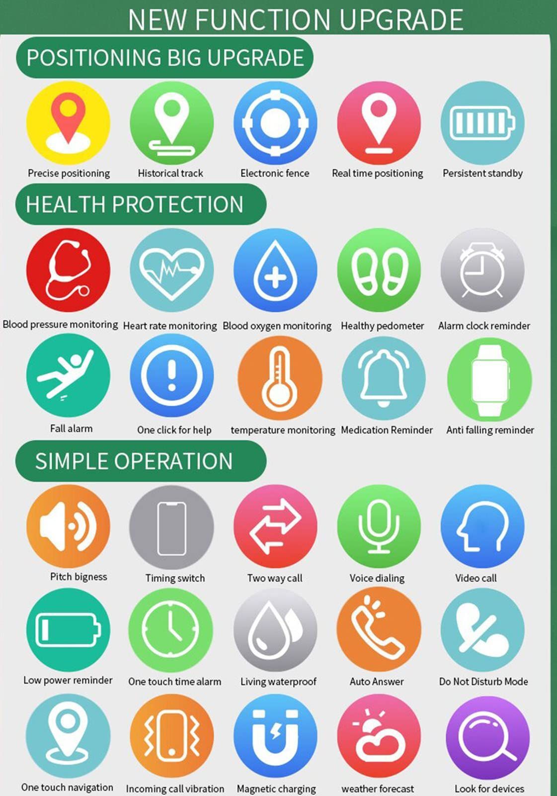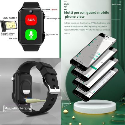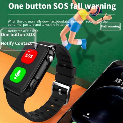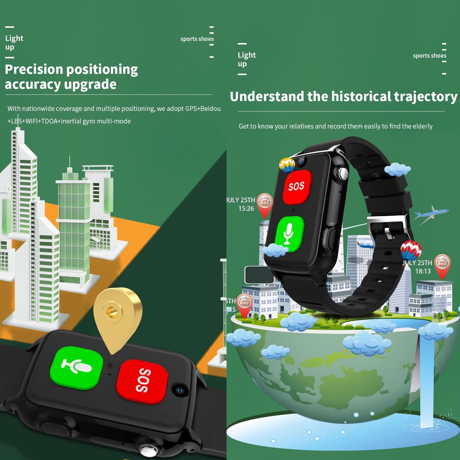 SOS Smartwatch Elderly GPS Camera 4G 2 Way Talk Alarm Alert System Seniors Safety Fence Emergency Video Call Health Tracker Wearable Device Black