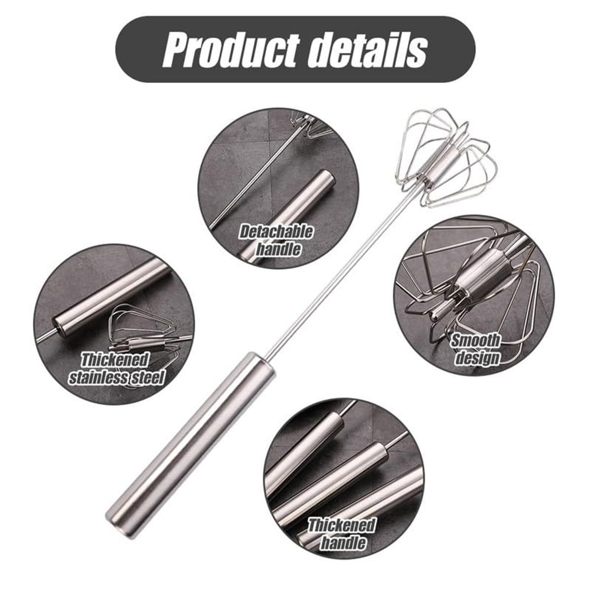 Stainless Steel Semi-Automatic Whisk,Stainless Steel Egg Whisk Hand Push Rotary Whisk Blender,Hand Push Mixer Stirrer Tool for Cooking Kitchen Home Egg Milk (14in)