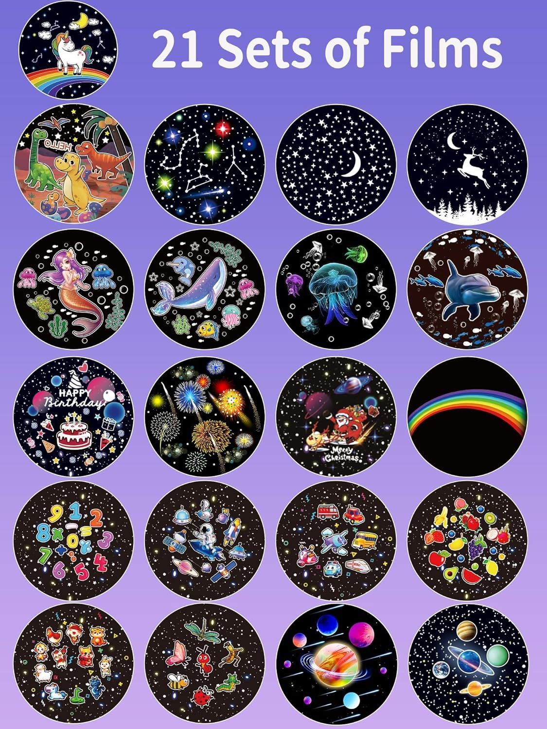 Star Projector Night Light for Kids 21 Films Unicorn Musical Lamp, Princess Room Decor, Ideal Gift for Birthday, Christmas & New Year Celebrations