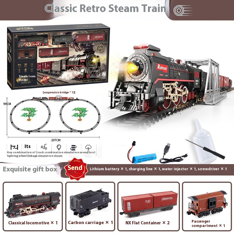 - Luminous Carriages and Multifunctional Locomotive: The locomotive can produce whistle sounds and emit smoke when filled with water from the included water bottle, while the passenger carriages light up for a magical ride.