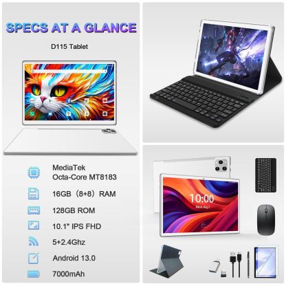 - Extra memory experience - Tablet with 128GB internal ROM offers an endless amount of memory, so you can enjoy the experience of storing and downloading as much as you want with this Android 13 tablet. What’s more, You can expand your memory by adding up to 1TB of TF card yourself as needed. 16GB RAM of this 10 Inch Tablet provides faster running speeds (8+8 virtual memory expansion). Achieve greater upgrades by expanding technology.