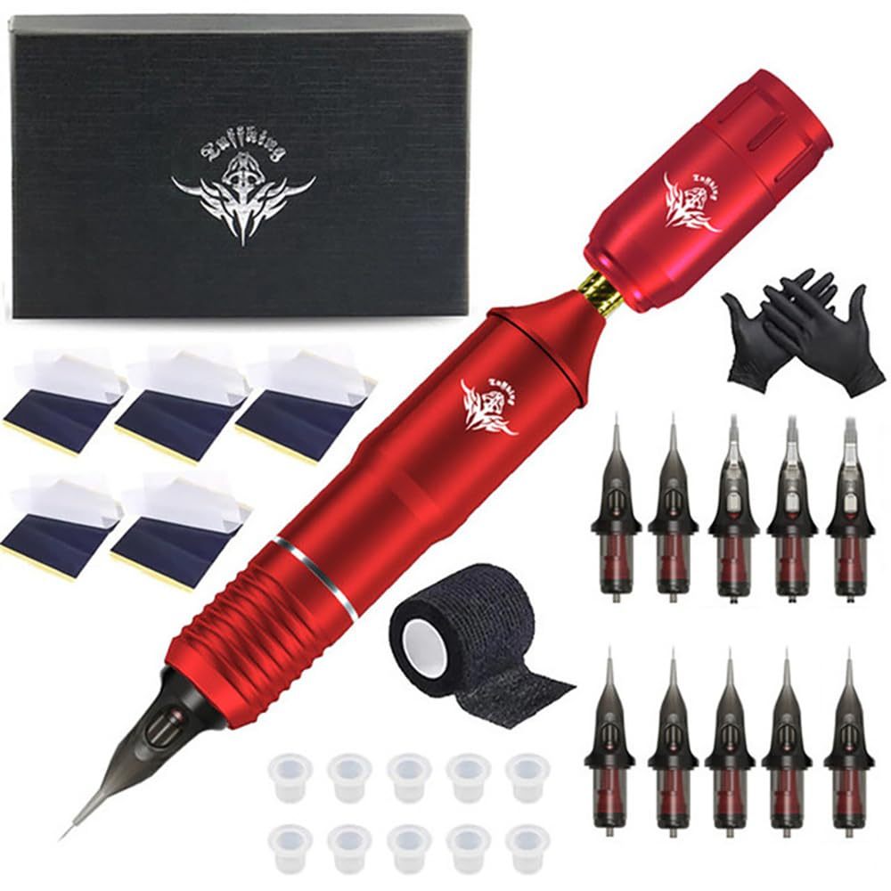 Tattoo Machine Kit Professional Wireless Tattoo Pen Kit Detachable RC Tattoo Power Supply,Tattoo Motor Unit Color Red