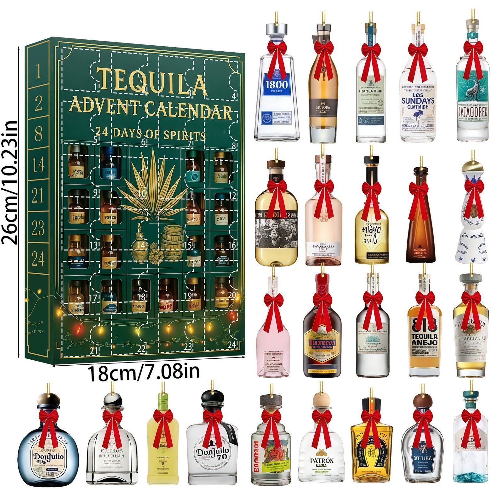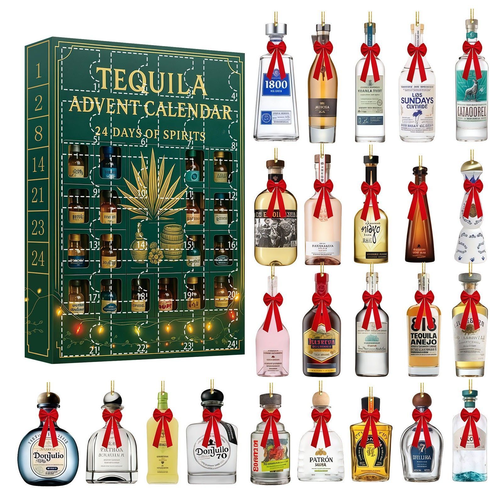 Tequila Christmas Advent Calendar Countdown with 24 Surprise,2D Acrylic Christmas Tree Pendant 24 Days Of Christmas Gift Box For Christmas Decorations