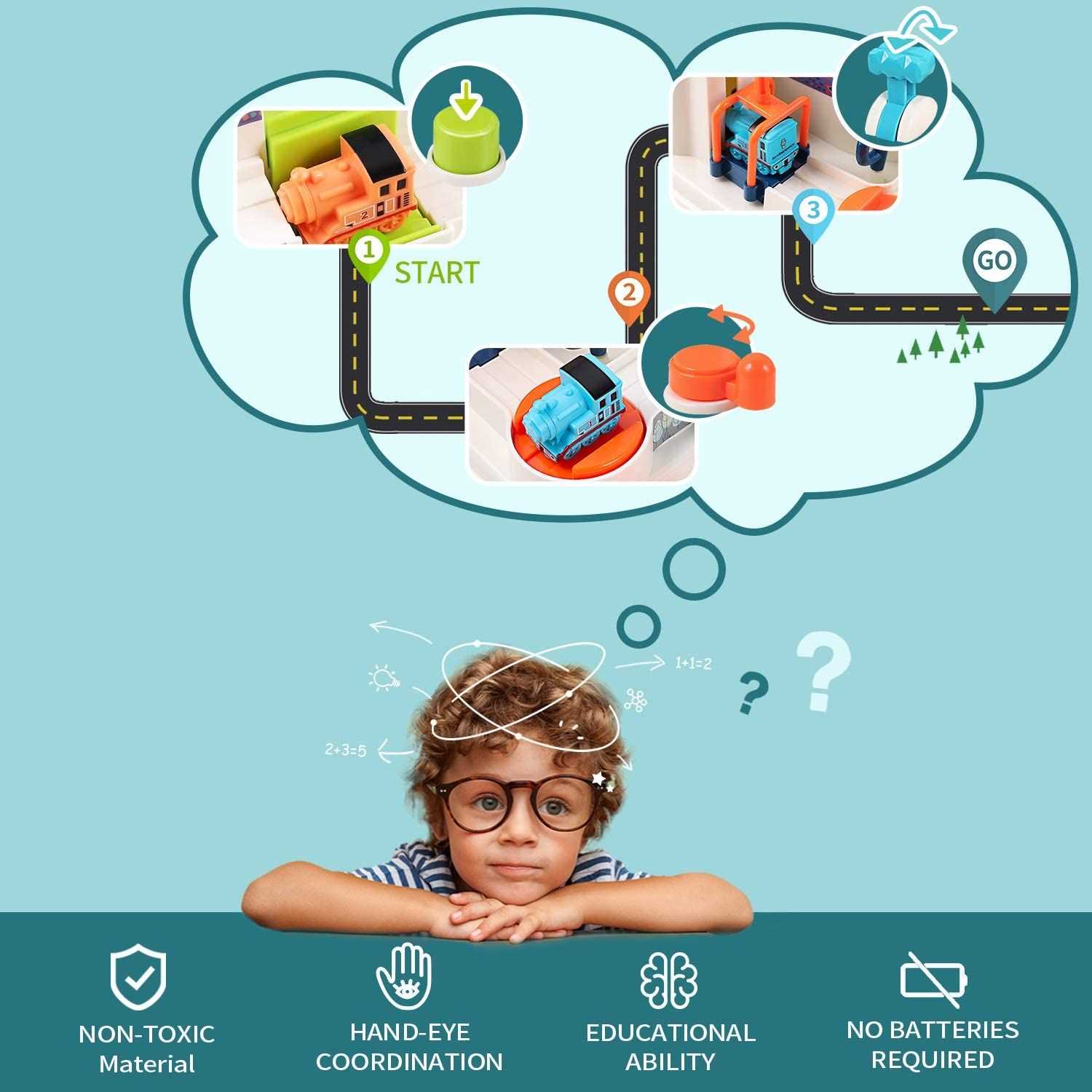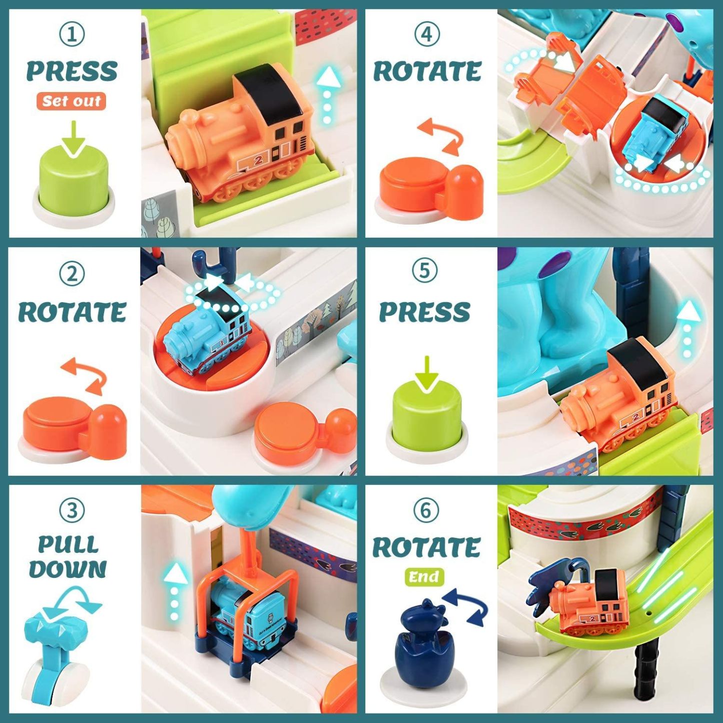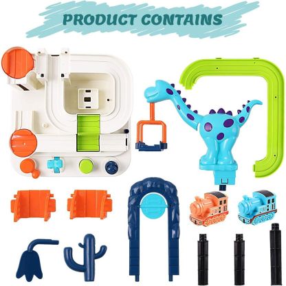 Train Race Track Set for Kids, Dinosaur Ramp Vehicle Toys for Boys, Car Adventure Game, Educational Birthday Gift for Kids