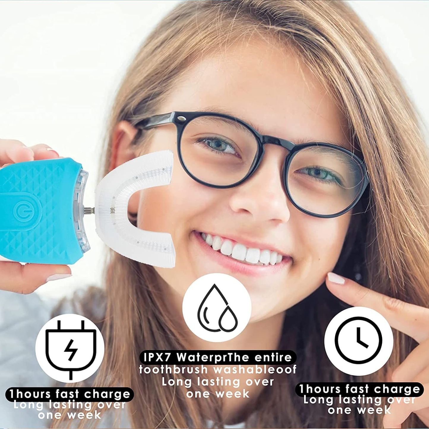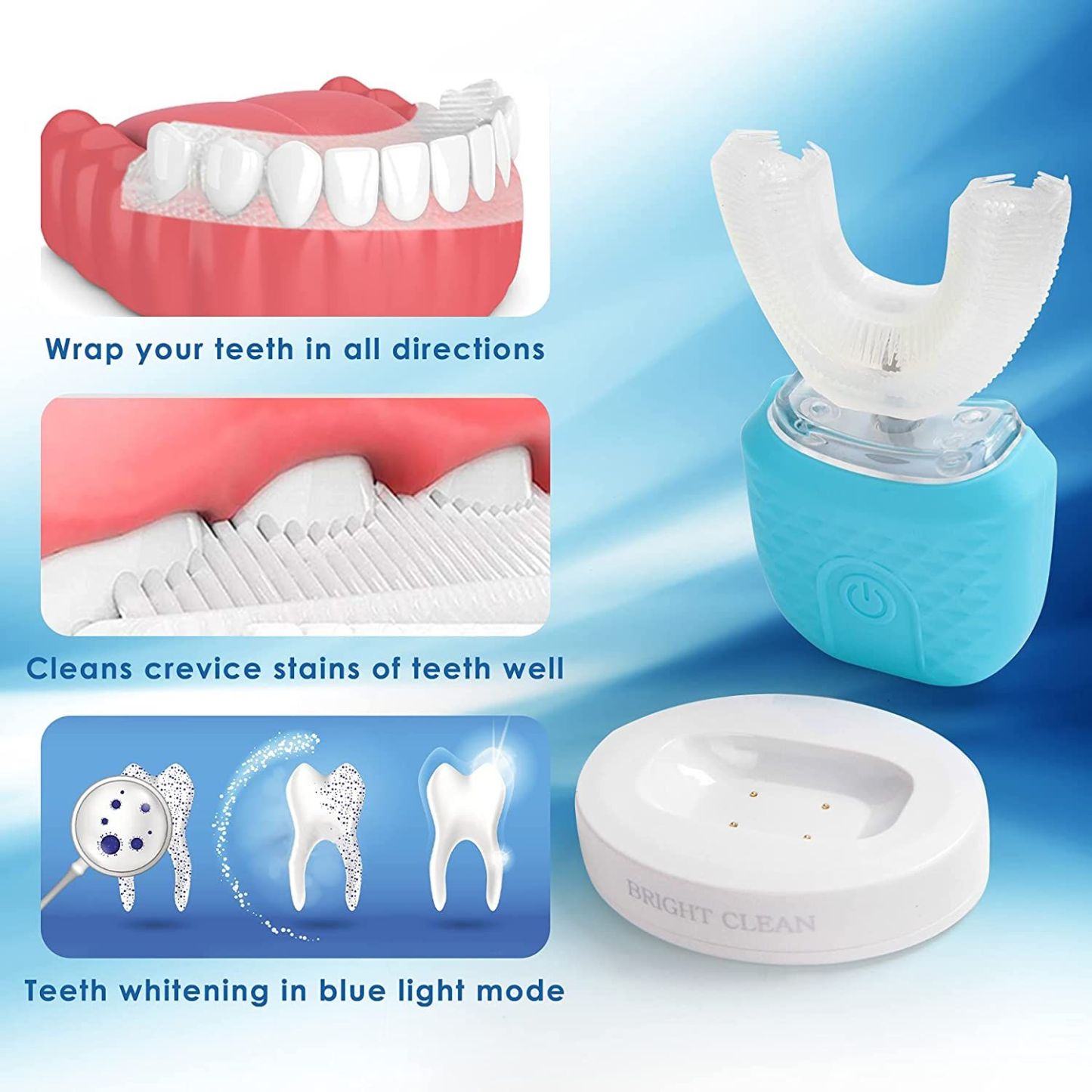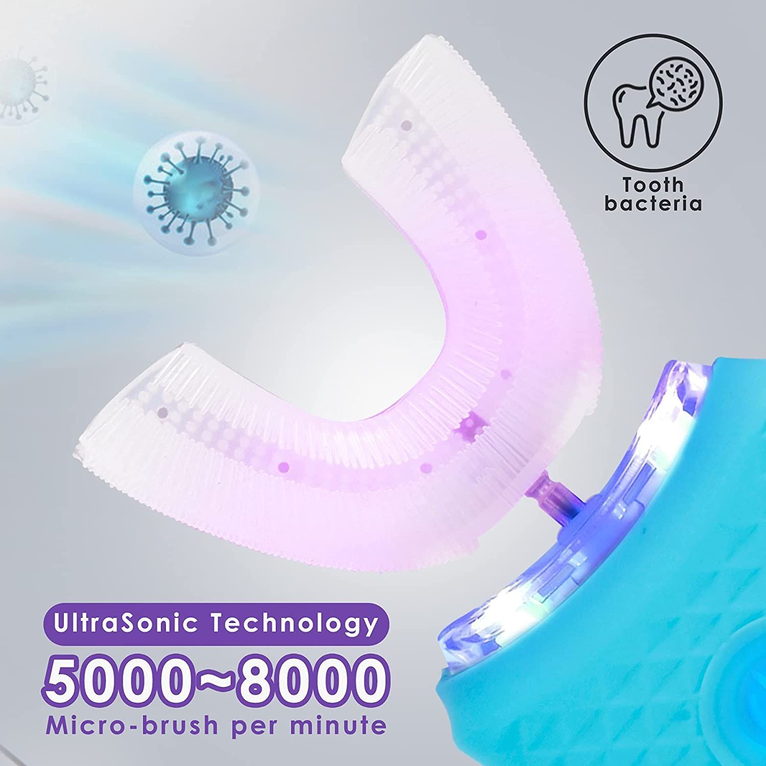 U Shape Automatic Toothbrush with UV Light, Wireless Charging 4 Cleaning Modes, Home Travel Washable Dual Use