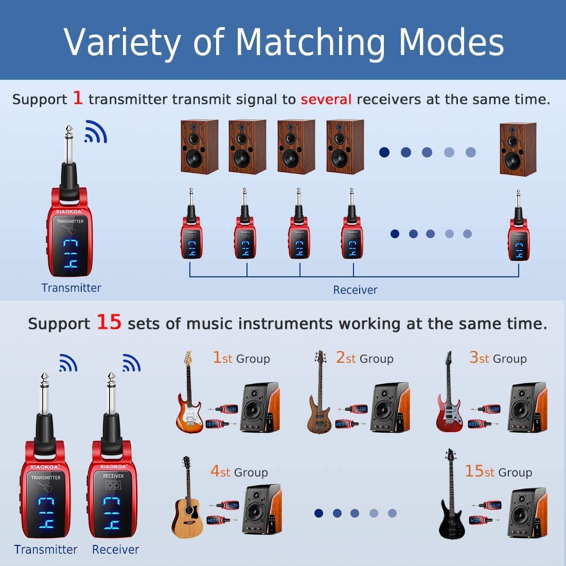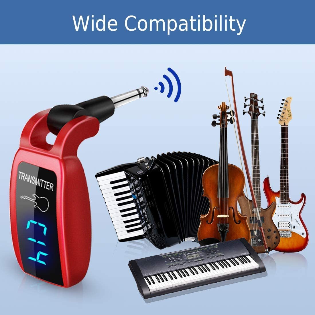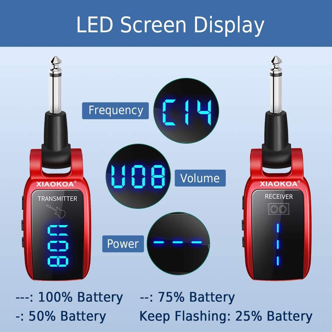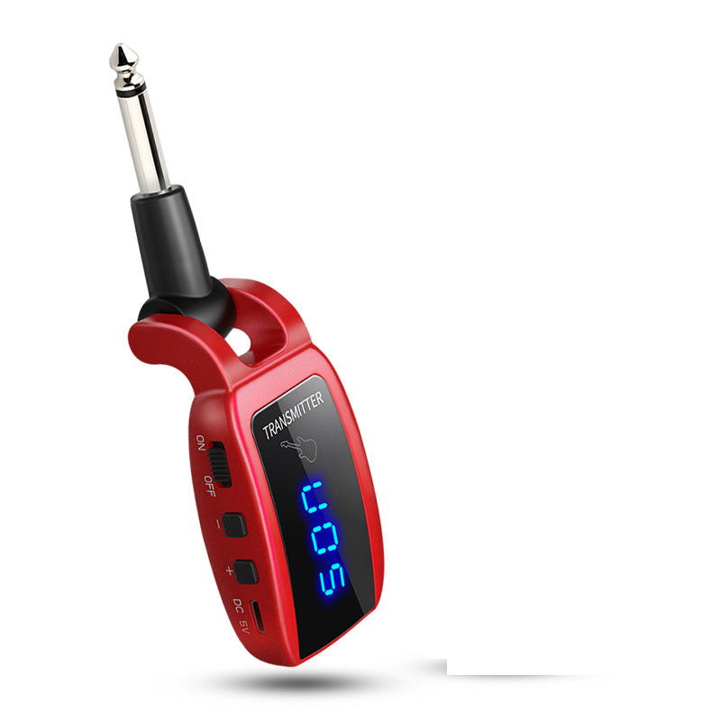 UHF Wireless Guitar Transmitter Receiver with HD LED Screen for Electric Guitar Bass Musical Instruments ?Red?