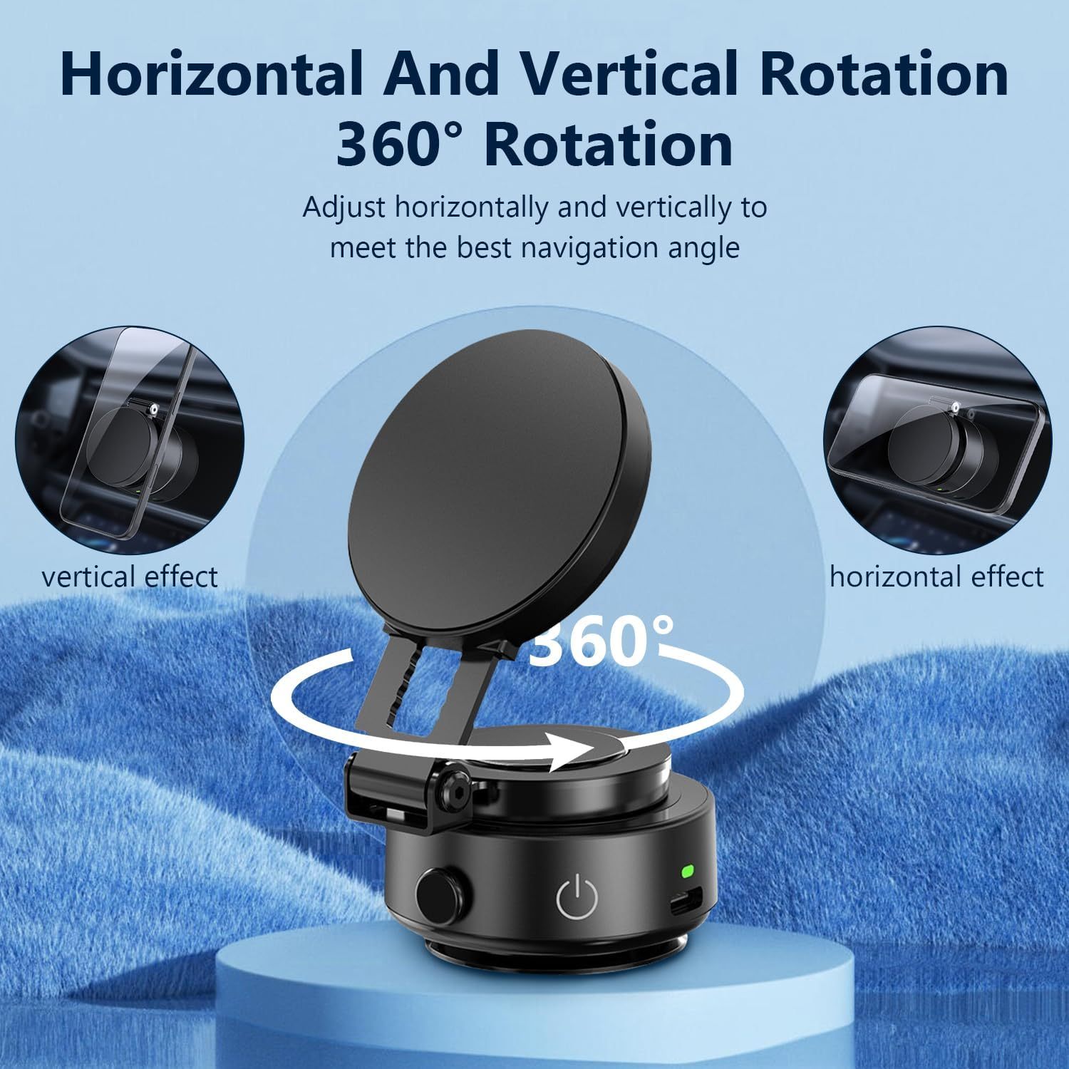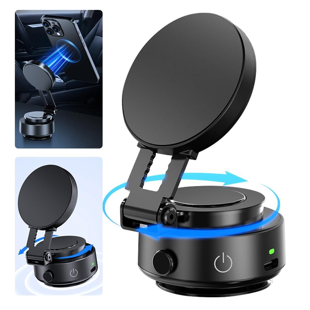 Upgraded Magnetic Phone Holder for Car,Electric Vacuum Suction Phone Mount,360 Degree Portable Retractable Car Phone Mount for All Smartphones